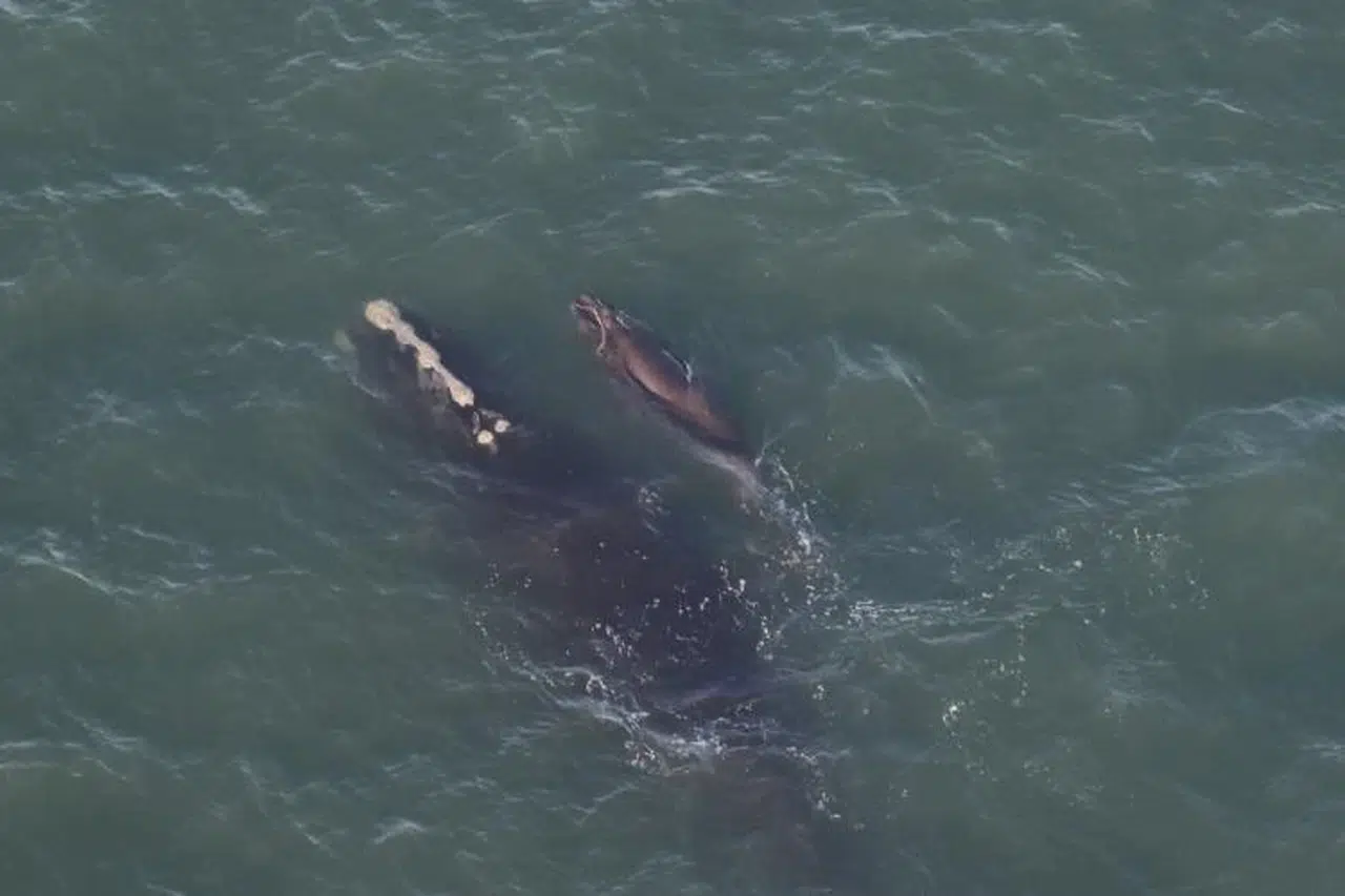 Nesli tükenme tehlikesi altındaki Kuzey Atlantik buzul balinası, yavrusuyla görüntülendi