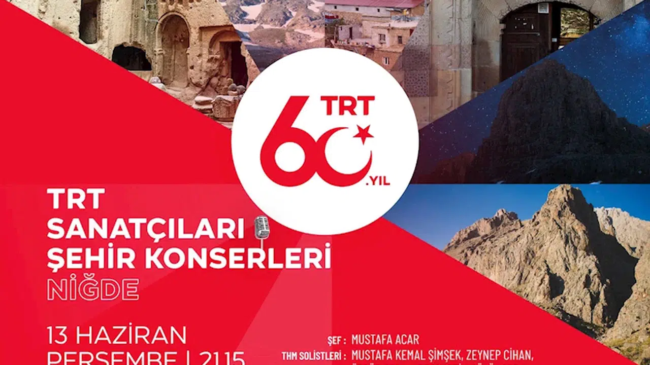 Adnan ÇELEBİ/NİĞDE,(DHA)- NİĞDE'de milli kültürün sürdürülmesi ve gelişimine katkı sağlamak amacıyla TRT'nin kuruluşunun 60. yılı kapsamında, 'TRT Sanatçıları Şehir Konseri' düzenlenecek.