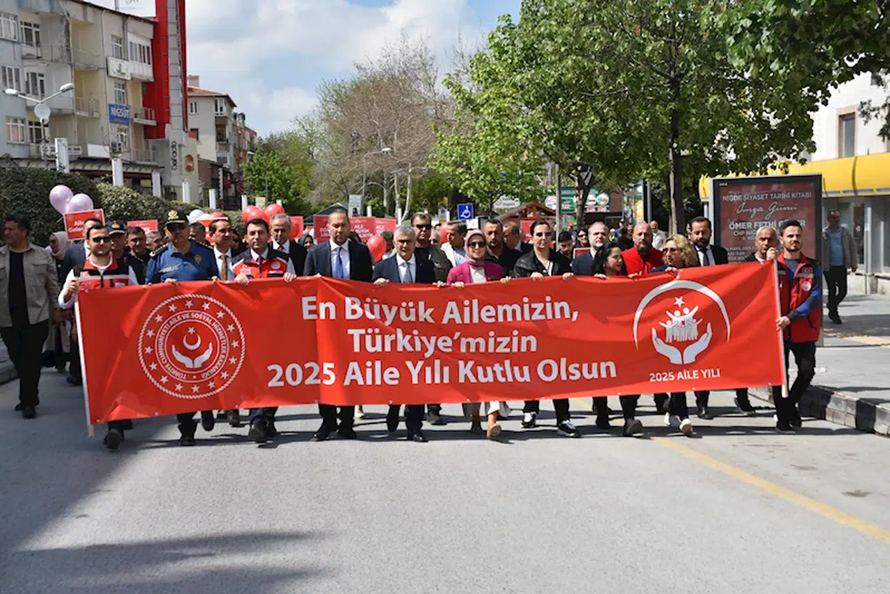 Aile Haftası çerçevesinde düzenlenen farkındalık yürüyüşü, şehrin merkez noktalarında geniş katılımla gerçekleştirildi. Etkinlikte 'Güçlü Aile, Güçlü Toplum' sloganı öne çıktı. Yürüyüşe, Vali Cahit Çelik, Belediye Başkanı Emrah Özdemir, Ömer Halisdemir Üniversitesi Rektörü Prof. Dr. Hasan Uslu, İl Emniyet Müdürü Yılmaz Delen, İl Jandarma Komutanı Jandarma Albay Gürol Okyar, İl Sağlık Müdürü Dr. Bahadır İnan, kamu kurum ve kuruluşlarının temsilcileri, üniversite öğrencileri, sivil toplum kuruluşları, aileler ve çok sayıda gönüllü vatandaş katıldı. Katılımcılar ellerinde pankartlar ve dövizlerle yürüyüşe renk katarken, yürüyüş boyunca vatandaşlara aile kurumunun önemine dair broşürler dağıtıldı. Yürüyüşe, özellikle gençlerin ve çocuklu ailelerin yoğun katılım göstermesi dikkat çekti. (DHA)