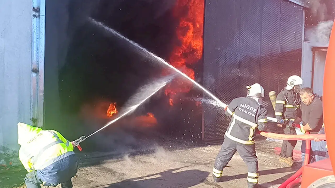 Niğde Organize Sanayi Bölgesi'nde reklam panosu üretilen bir atölyede, saat 09.00 sıralarında bilinmeyen bir nedenle yangın çıktı. Alevleri fark eden çalışanlar, iş yerini tahliye ederek itfaiyeye haber verdi. İhbarla yangın bölgesine çok sayıda itfaiye, sağlık ve polis ekibi sevk edildi. Ekipler, alevleri kontrol altına alabilmek için çalışma başlattı. Niğde Valisi Cahit Çelik, iş yerine gelerek çalışmaları inceledi. Burada konuşan Vali Çelik, "Elimizdeki tüm itfaiye araçlarını buraya yönlendirdik. İçeride kimse yok. Ölü veya yaralı yok. Atölyede genellikle plastik hammadde kullanıldığı için yangın büyüdü. İnşallah en kısa sürede kontrol altına alıp, söndüreceğiz" diye konuştu. (DHA)