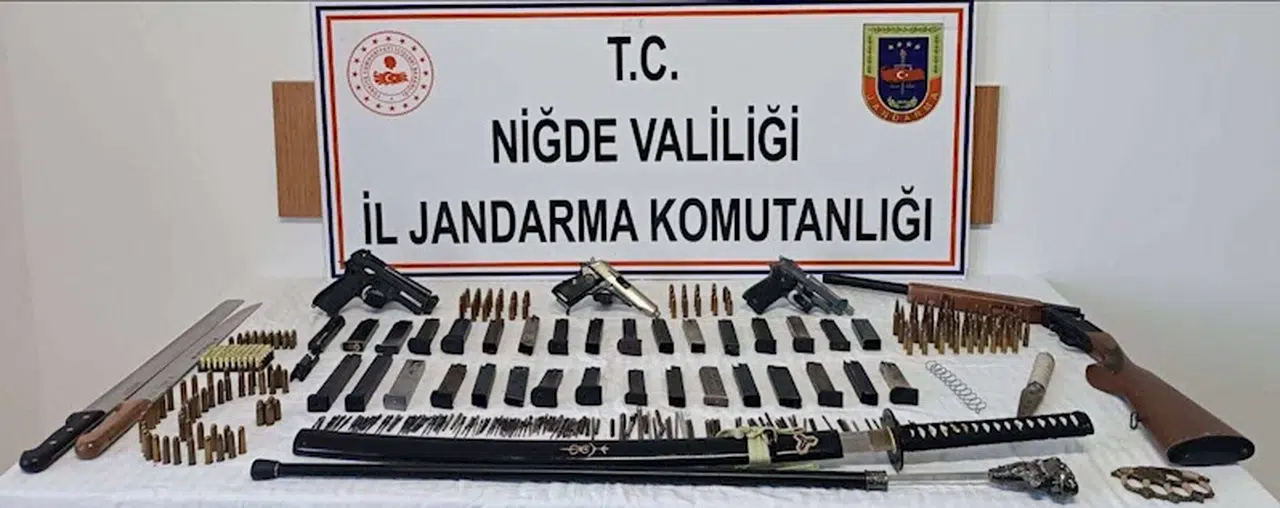 Niğde İl Jandarma Komutanlığı tarafından ruhsatsız tabanca bulundurma ve satışı yapan şahıslara yönelik düzenlenen operasyon kapsamında, Edikli beldesinde bir şüphelinin evine baskın yapıldı. Evde yaptıkları aramada; 3 adet tabanca, 39 adet G3 piyade fişeği, 198 adet tabanca fişeği, 36 adet tabanca şarjörü, 1 adet ruhsatsız av tüfeği, 77 adet tabanca iğnesi, 43 adet tabanca yayı, 3 adet bıçak, 1 adet muşta ve 2 adet kılıç ele geçirildi. Gözaltına alınan şüphelinin jandarmadaki sorgusu devam ediyor. (DHA)