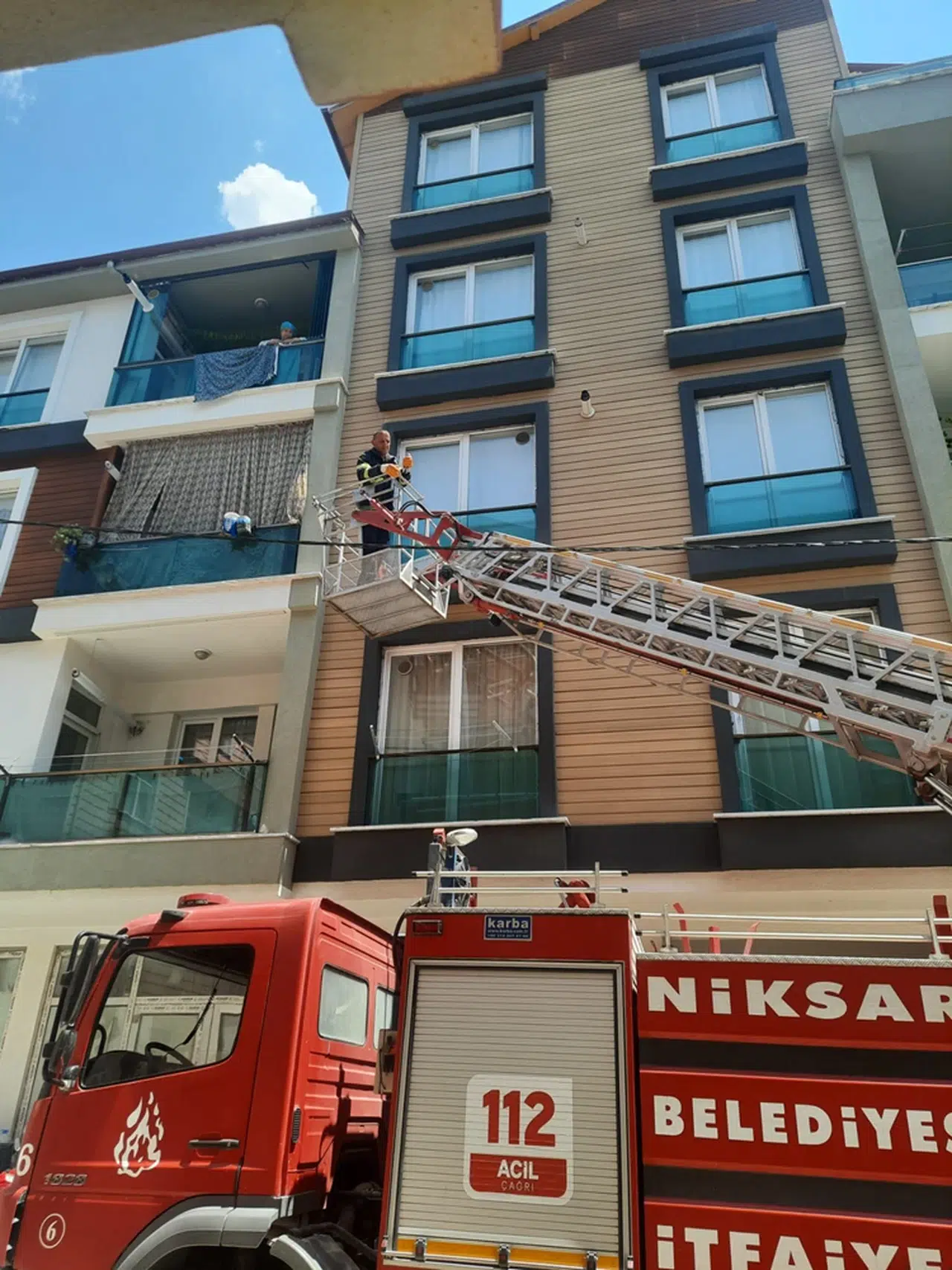 Bağlar Mahallesi'nde bir apartmandaki dairenin penceresine kuş sıkıştığını gören apartman sakinleri Niksar Belediyesi itfaiye ekiplerine haber verdi.