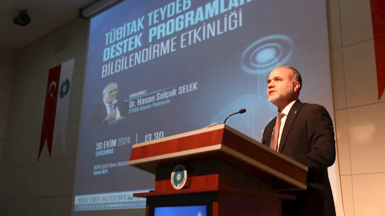 Adnan ÇELEBİ/NİĞDE,(DHA)-NİĞDE Ömer Halisdemir Üniversitesi (NÖHÜ) Araştırma Dekanlığı tarafından akademik personele, öğrencilere ve sektör temsilcilerine yönelik TÜBİTAK Teknoloji ve Yenilik Destek Programları Başkanlığı (TEYDEB) hakkında bilgilendirme etkinliği düzenlendi.