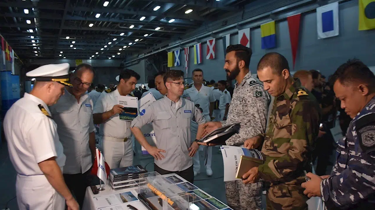Türkiye'nin ev sahipliğinde, dost ve müttefik ülke unsurlarının katılımıyla İzmir Körfezi ve Karadeniz Ereğli önlerinde icra edilecek NUSRET-2024 Davet Tatbikatı kapsamında İzmir Alsancak Limanı'na demirleyen TCG Sancaktar'da savunma sanayii firmalarının mayın harbi silah, sistemleri sergisi, sunum ve fiili gösterimleri yapıldı. 10 firmanın katıldığı sergide gemi prototipleri, otonom su altı aracı, insansız deniz aracı gibi su altı savunma araçları tanıtıldı.
