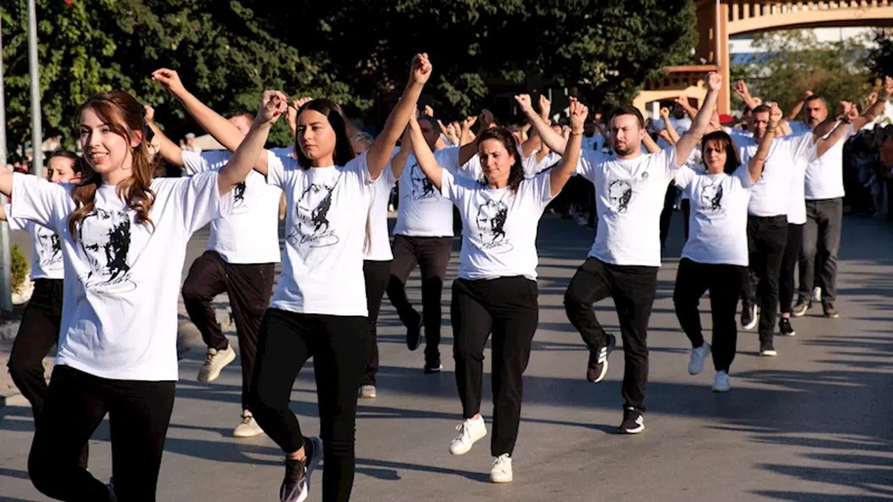 Buse BAĞCI / ÖDEMİŞ (İzmir), (DHA)-İZMİR'in Ödemiş ilçesinde, Ödemiş Belediye Başkanı Mustafa Turan'ında aralarında bulunduğu 101 kişi, Cumhuriyet'in kuruluşunun 101. yılı kutlamaları kapsamında Eski Otogar Kavşağı'nda zeybek oynadı. Ödemiş Belediyesi Halk Dansları Topluluğu koordinesinde her yaş ve meslekten kişinin katılımıyla gerçekleştirilen zeybek gösterisi izleyenler tarafından uzun süre alkışlandı.