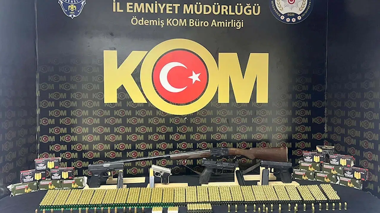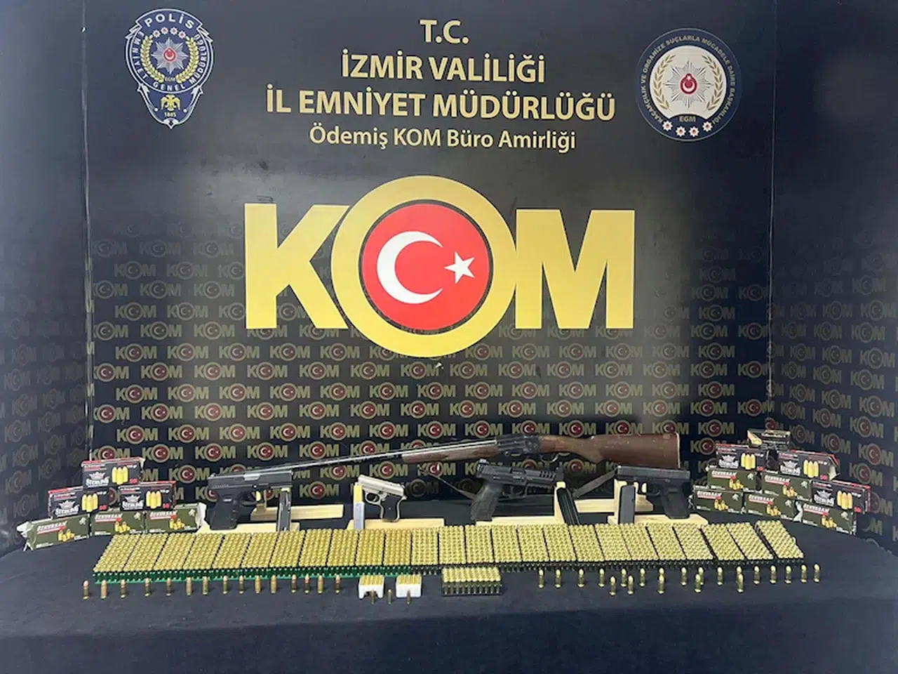 Ödemiş Cumhuriyet Başsavcılığı koordinesindeki İzmir İl Emniyet Müdürlüğü Organize Suçlarla Mücadele Şube Müdürlüğü'ne bağlı Ödemiş Organize Suçlarla Mücadele Büro Amirliği ekipleri, ruhsatsız silah ve mermi bulunduran şüphelilere yönelik 4 ve 6 Şubat'ta 2 ayrı operasyon düzenledi. Şüphelilerin evlerindeki aramalarda ruhsatsız 4 tabanca, 1 tüfek, 1389 adet tabanca fişeği ele geçirildi. 3 şüpheli gözaltına alındı. Şüpheliler sevk edildiği adliyede adli kontrol şartı ile serbest bırakıldı.(DHA)