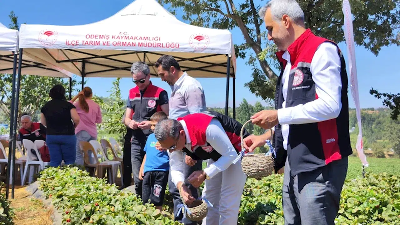 Tarım ve Orman Bakanlığı'nın desteğiyle Ödemiş İlçe Tarım ve Orman Müdürlüğünce yürütülen, çiftçilerin gelirinin arttırılması ve doğal ürünlerin tüketicilere ulaştırılması hedefiyle hayata geçirilen 'Çiftçinin Geleceği Organik Ödemiş Çileği' projesi kapsamında Bıçakçı Mahallesi'nde hasat etkinliği düzenlendi. Etkinliğe İzmir İl Tarım ve Orman Müdür Yardımcısı Ayhan Temiz, Bitki Sağlığı ve Bitkisel Üretim Şube Müdürü Engin Altunoğlu, Ödemiş İlçe Tarım ve Orman Müdürü Hüseyin Kılınç, organik tarım birimi personeli, müdürlük personeli, organik tarım sertifikasyon kuruluşu temsilcileri ve çiftçiler katıldı. Proje kapsamında çilek hasadı gerçekleştirildi.(DHA)