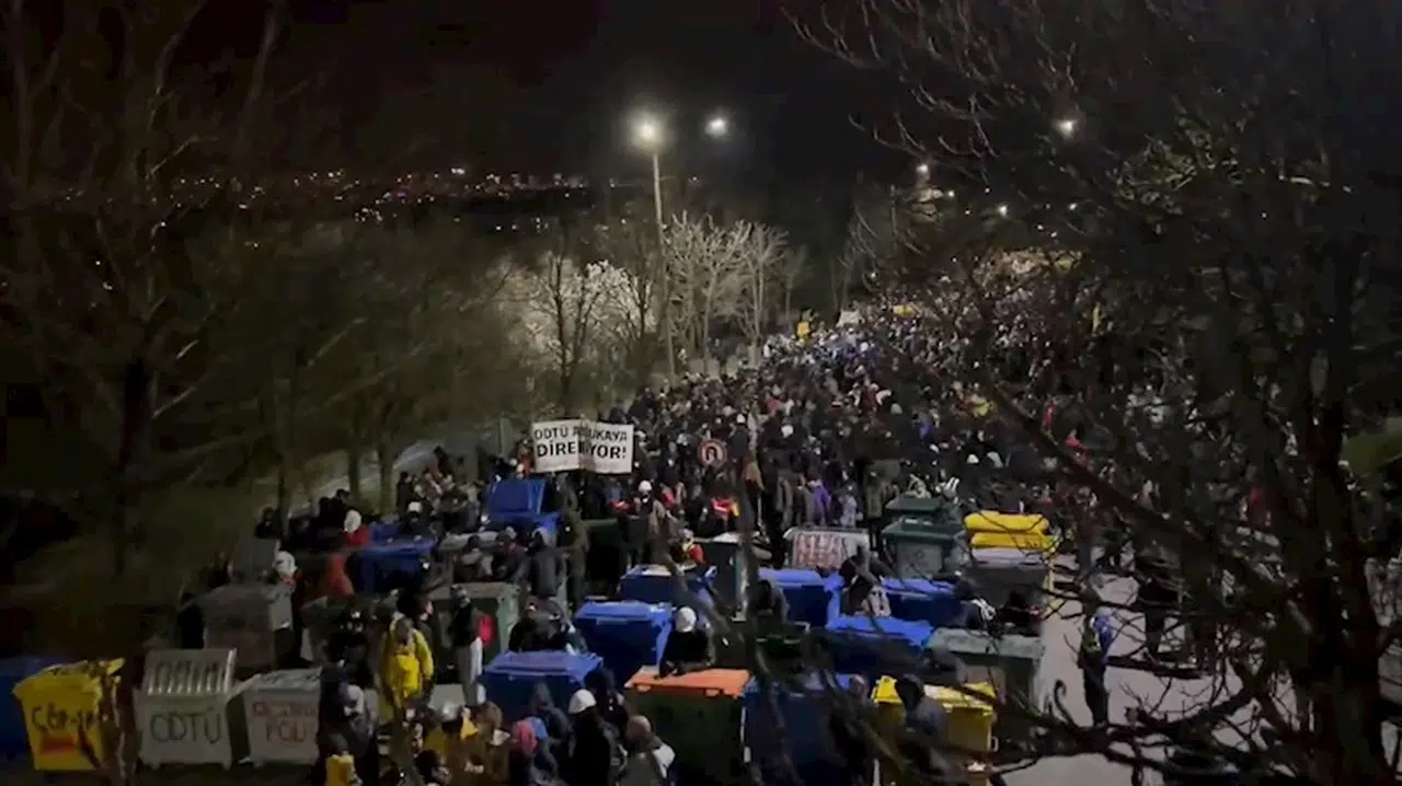 İBB Başkanı Ekrem İmamoğlu'nun gözaltına alınmasını protesto eden Orta Doğu Teknik Üniversitesi (ODTÜ) öğrencileri, üniversite kampüsünde toplandı. Kalabalık grup, pankartlar ve sloganlarla kampüs dışına yürümek istedi. Öğrenciler, A1 Kapısı'nda TOMA ile güvenlik önlemi alan polis ekipleri ile karşı karşıya geldi. Çöp konteynerleri ile yolda barikat kuran öğrenciler ile polis arasında arbede yaşandı. Polis, öğrencilerin dağılması için anons yaparken, gruba TOMA ve biber gazı ile müdahalede bulundu. Çıkan olaylarda çok sayıda öğrenci gözaltına alındı.