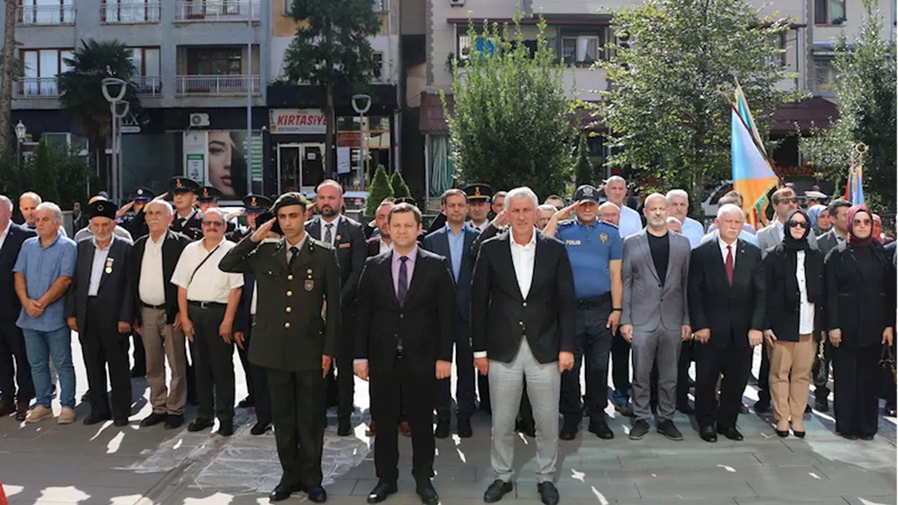 Of Kaymakamlığı önündeki törende, Kaymakam Yiğit Yaşar Demirer, Of Belediye Başkanı Salim Salih Sarıalioğlu ve Of Askerlik Şubesi Başkanı Asteğmen Enis Demirhan Atatürk büstüne çelenk sunuldu.