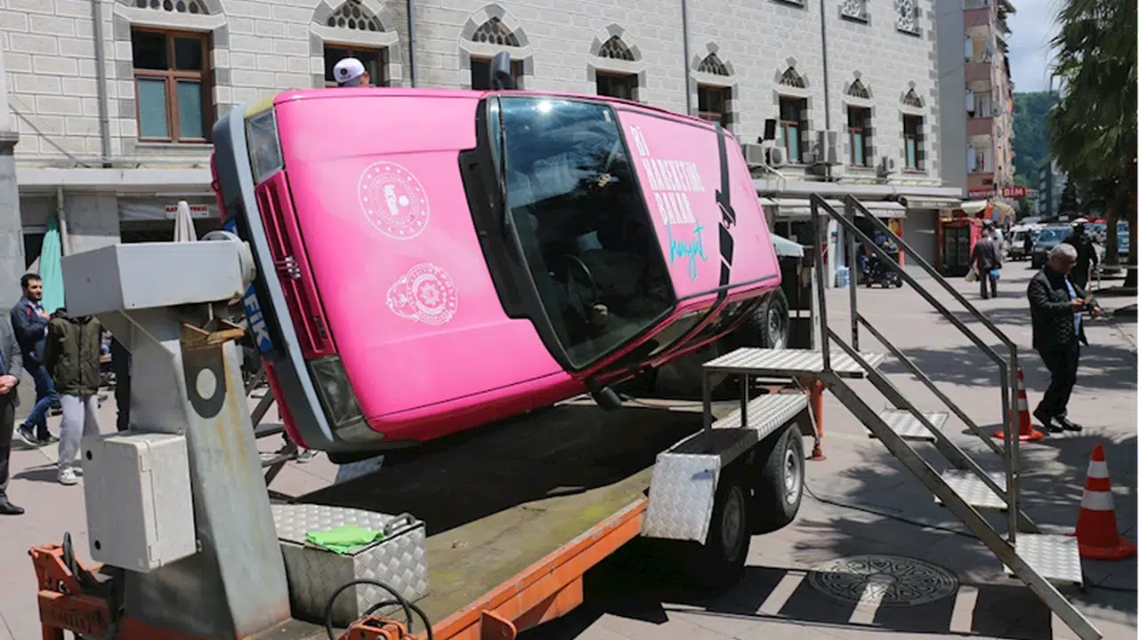 İlçe Emniyet Müdürlüğü'nce Çarşıbaşı Cami önünde düzenlenen etkinlikte, emniyet kemerinin önemine dikkat çekebilmek için vatandaşlar simülasyon aracını test etti.