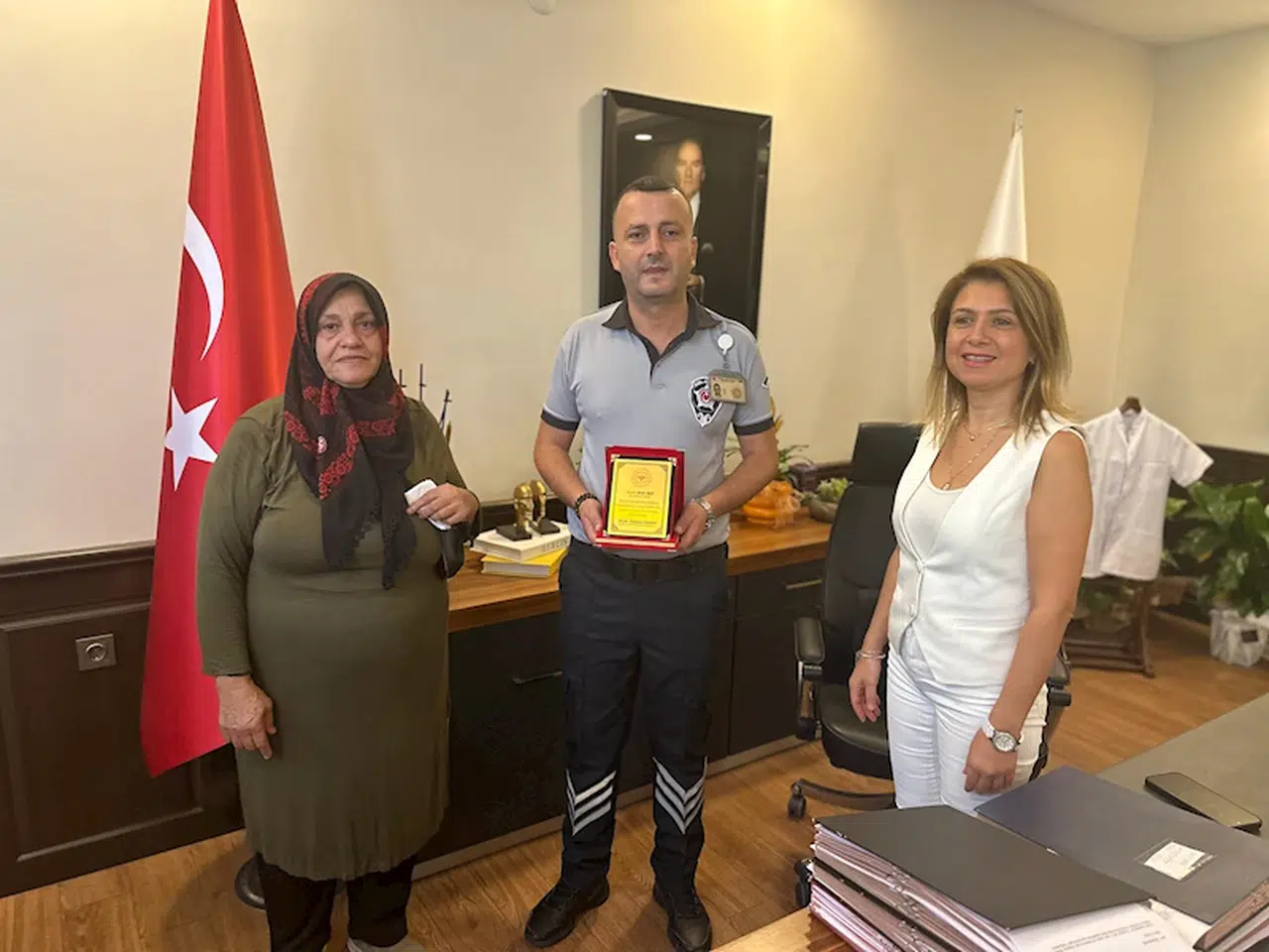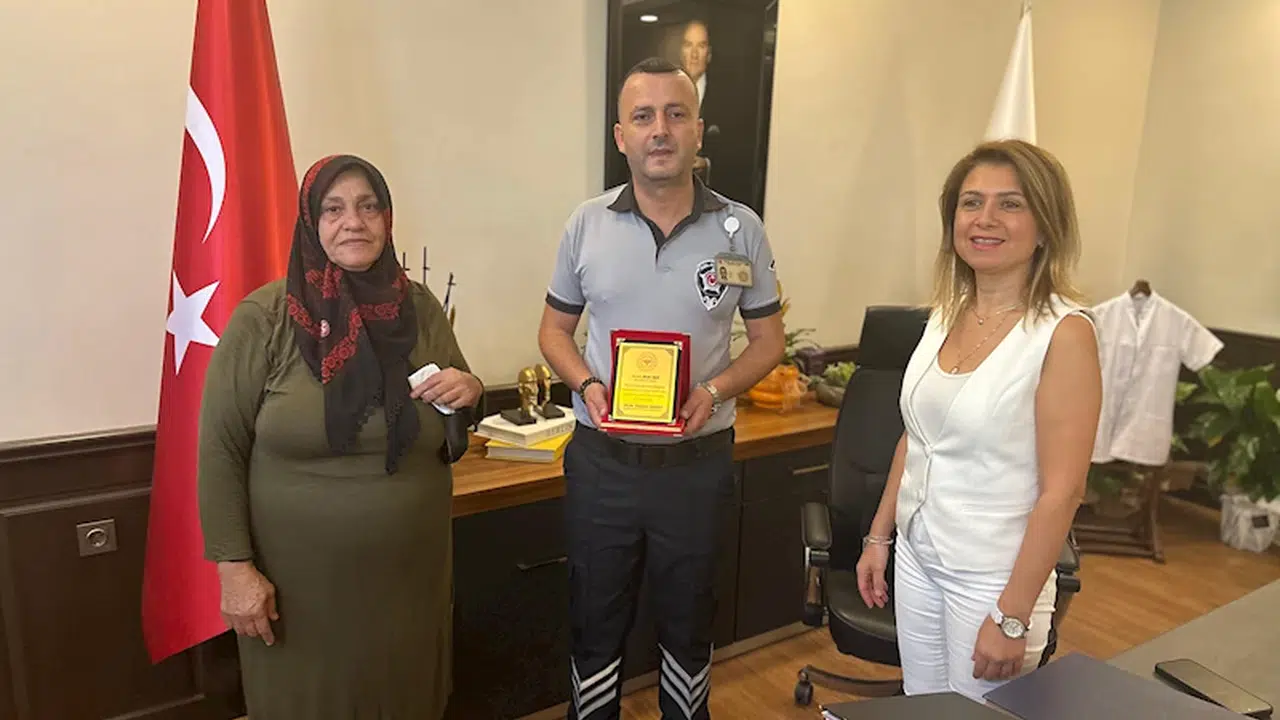 Çukurova ilçesinde yaşayan Faize Dizman, geçen hafta Seyhan Devlet Hastanesi'nde tedavi gören ablası Yıldız İzgi'yi (67) ziyaret etti. Ablasının doktorundan bilgi alan Dizman, içerisinde 2 çift bilezik ve 10 yarım altının bulunduğu çantayı odada unutarak hastaneden ayrıldı. Görevli asistan bir süre sonra çantayı fark edince güvenlik görevlisi Sadi Işık’a bildirdi. Çantayı alıp odadan ayrıldıktan sonra içini kontrol eden Işık, Dizman’ın cep telefonunu ve altınları fark etti. Cep telefonundan son aranan numaraları kontrol ettiğinde kadının damadına ulaşan Işık, çantayı sahibine teslim etti. Seyhan Devlet Hastanesi Başhekimi Dr. Çiğdem Erhan, dürüstlüğü nedeniyle güvenlik görevlisi Işık’a plaket verdi.