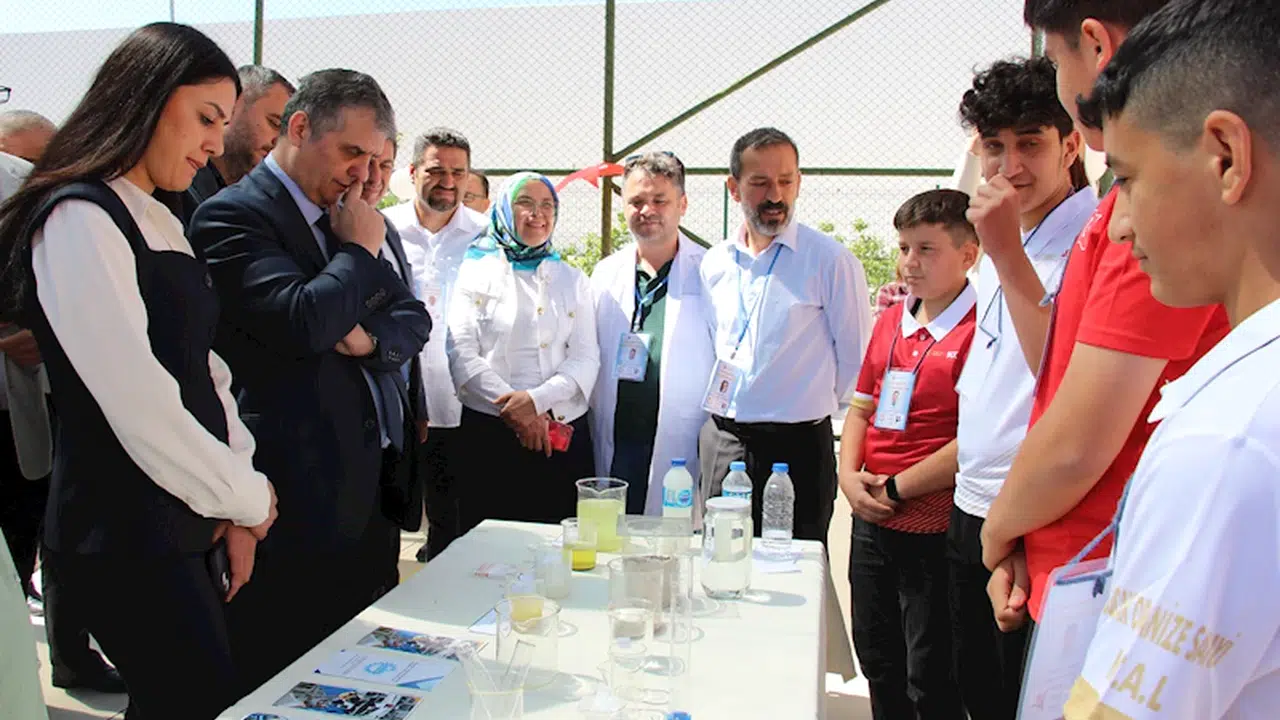 Halk oyunu gösterileri ve müzik dinletisi sunulmasının ardından Kaymakam Bayram Gale, Belediye Başkanı Hülya Gümüş ve beraberindekiler okul bahçesinde açılan proje stantlarını gezerek öğrencilerden bilgi aldı. 75 öğrenci ve 41 öğretmenin katkıları ile oluşturulan 20 proje Bilim Fuarı kapsamında 3 gün boyunca okul bahçesinde sergilenecek. (DHA)