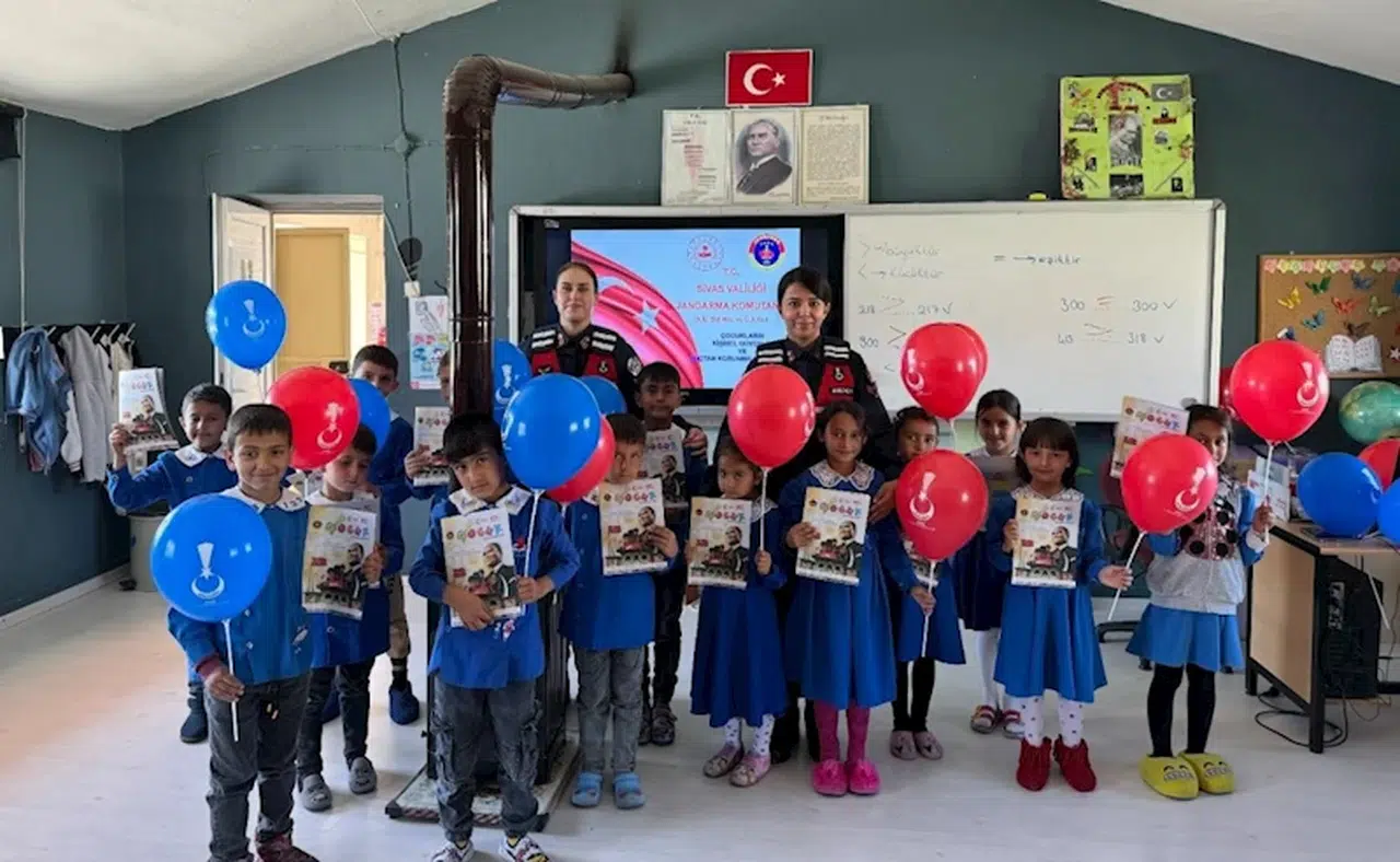 İl Jandarma Komutanlığı Aile İçi Şiddetle Mücadele ve Çocuk Kısım Amirliği arafından Gürün İlçe Jandarma Komutanlığı sorumluluk sahasında bulunan Davulhüyük İlkokulu'nda öğrenim gören öğrencilere Kişisel Güvenlik ve Suçtan Korunma Eğitimi verildi. Ekipler ayrıca öğrencilere görevleri anlatabilmek ve jandarmayı sevdirmek amacıyla hazırlatılan 'Tim Jandarma' isimli çizgi filmi izletilerek bilgilendirme yaptı. (DHA)