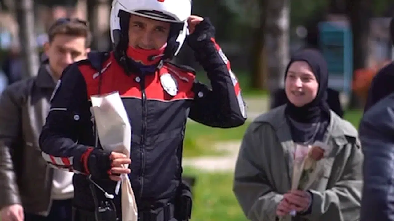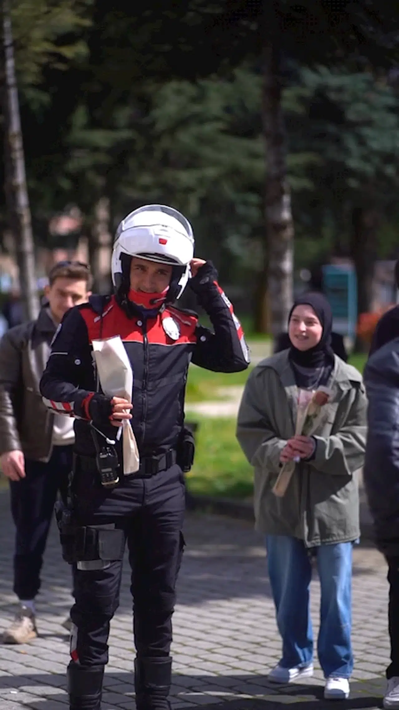 Uludağ Üniversitesi İşletme Fakültesi Uluslararası Ticaret topluluğu öğrencileri, Emniyet teşkilatının 180'inci Yıl dönümü nedeniyle etkinlik düzenledi. Öğrenciler, üniversite kampusu içinde kavga olduğu yönünde ihbarda bulundu. Olay yerine polis ekipleri sevk edildi. Kampusa giren polis ekiplerini gören öğrenciler birbirlerine yumruk yumruğa saldırdı. Polis ekipleri kavga eden öğrencileri ayırdıktan sonra yapılan sürpriz geldi. Polis ekipleri kısa süreli şaşkınlık yaşarken, öğrenciler de ellerindeki gülleri polis ekiplerine vererek, özel günlerini kutladı. o anlar cep telefonu kamerasıyla kaydedildi. (DHA)