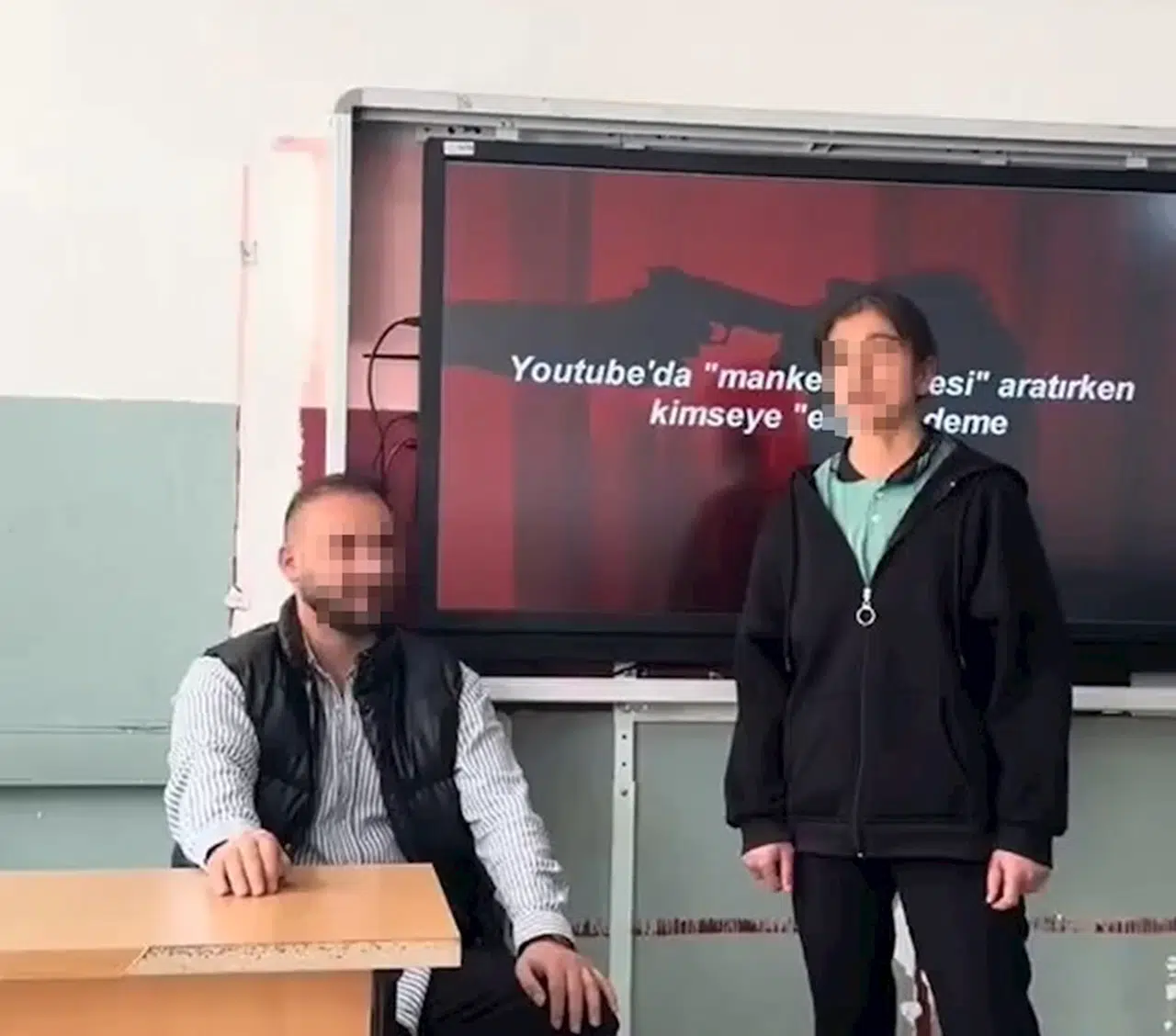 Kent merkezindeki bir lisede müzik öğretmeni R.T.Ç., bir kız öğrencisine sınıfta sözleri 'müstehcenlik' ve 'şiddet' içeren şarkı söyleterek sosyal medyadan paylaştı. Tepki çeken paylaşımın ardından R.T.Ç. sosyal medya hesabını kapatırken, İl Milli Eğitim Müdürlüğü tarafından idari soruşturma başlatıldı. (DHA)
