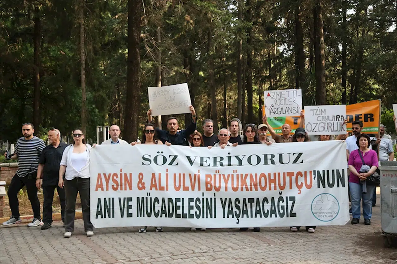 Büyüknohutçu Dostları Grubu adına konuşan Erol Malçok, Finike ilçesi Kızılcık Yaylası'nda canlı, cansız tüm doğayı mahveden taş ve mermer ocaklarına karşı mücadele verip, bölge insanında ekolojik bir bilinç oluşturmaya çalışan Ali Ulvi ve Aysin Büyüknohutçu’nun 9 Mayıs 2017'de katledildiğini söyledi. Ölümlerinin üzerinden geçen 8 yıla rağmen bu olayın azmettiricilerinin yargılanmadığını söyleyen Malçok, “Cinayetin arkasından tutuklanan Ali Yamuç, yaşam savunucuları Ali Ulvi ve Aysin Büyüknohutçu’yu para için öldürdüğünü söyledi. Arkasından ise eşi Fatma Yamuç'un üzerinde B. Mermer'in ortaklarından N.B.'ye hitaben yazılan, ‘10 gün içerisinde param gelmezse görüşürüz, ipleriniz cebinizde haberiniz olsun’ ifadeleri bulunan bir mektup yakalandı jandarma tarafından. Bu mektuba ve cinayet delillerini saklamasına dayanarak Fatma Yamuç cinayete iştirakten tutuklandı. Ancak tüm bu süreçler derinleştirme ve etkili bir soruşturmadan yoksun işletildi. Deliller yeterince toplanmadı ve telefon kayıtlarına bakma ihtiyacı bile duyulmadı” dedi.