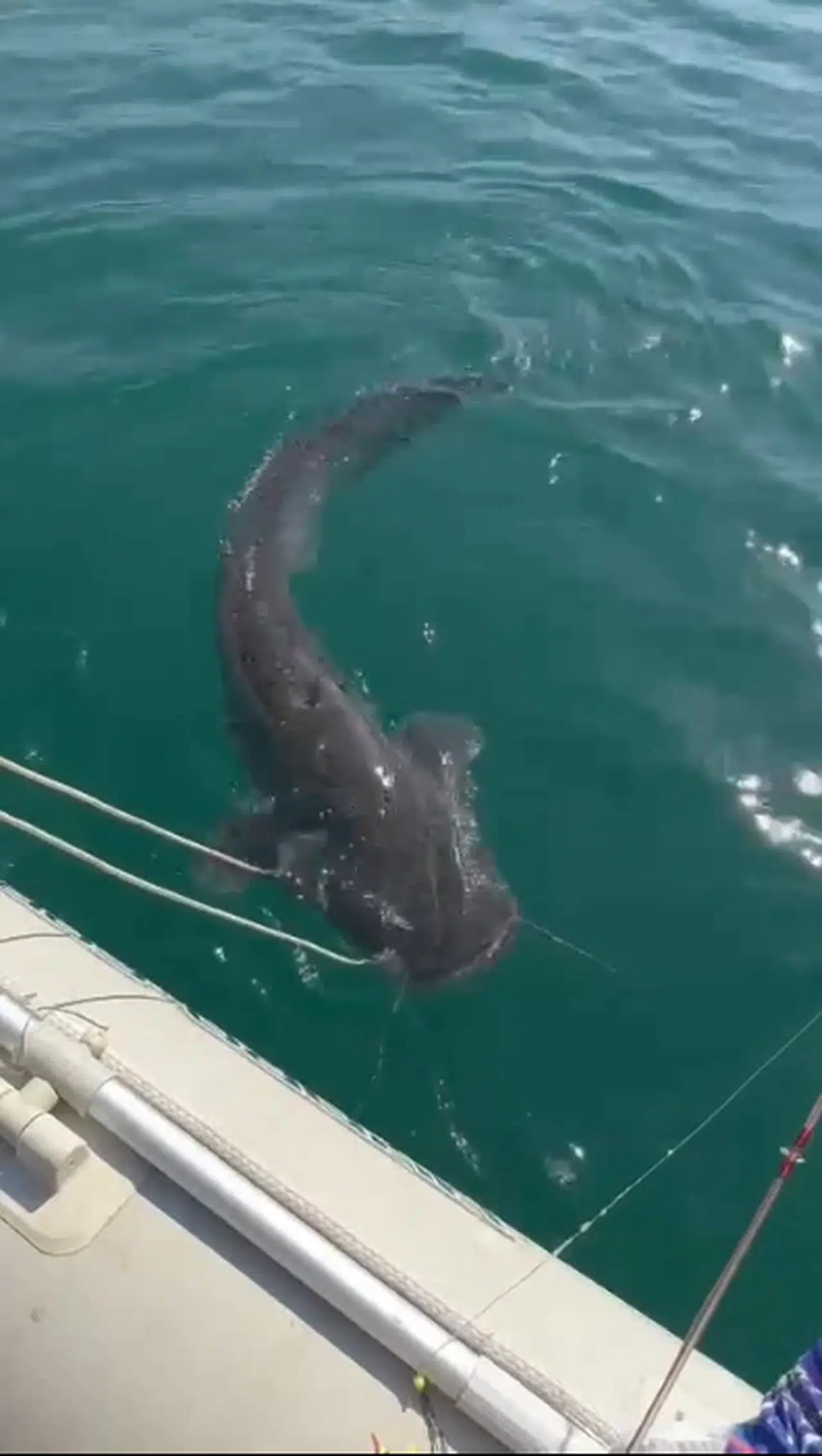 Oltayla 45 kiloluk yayın balığı yakaladı