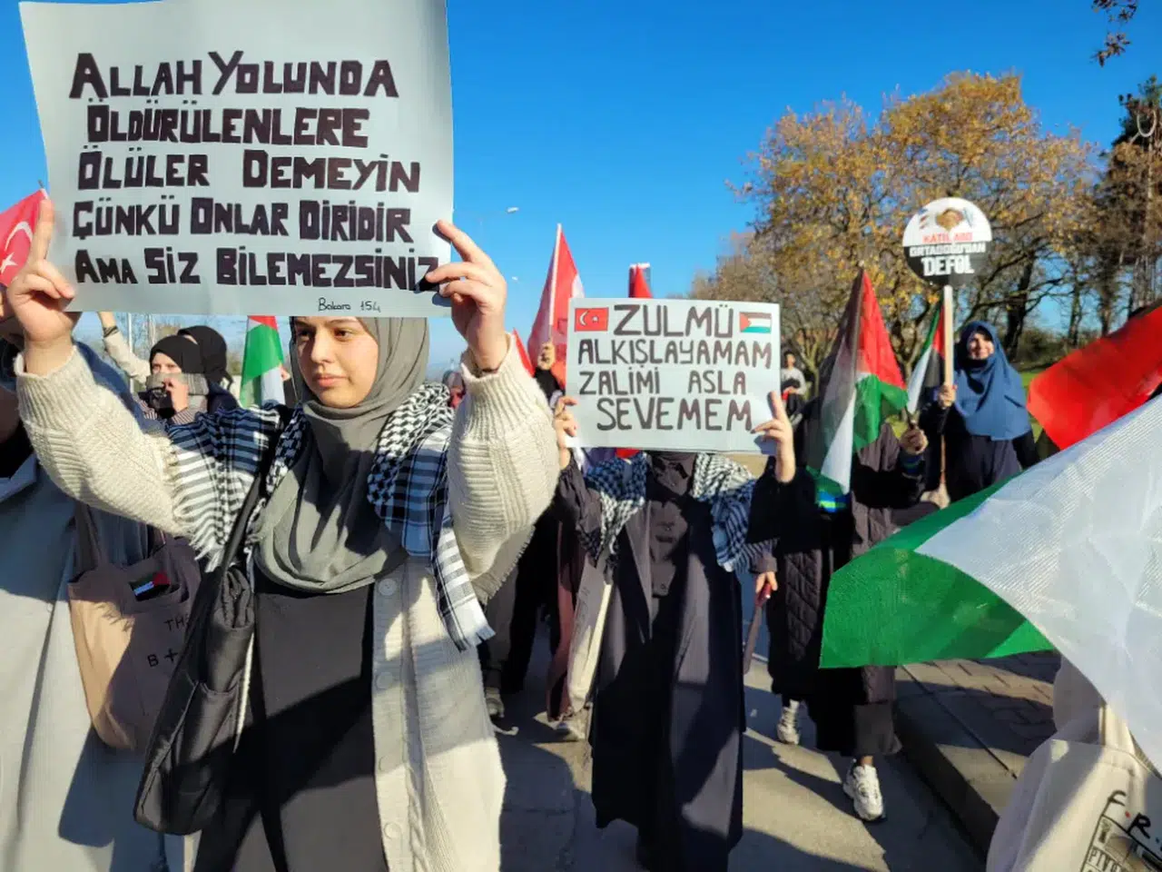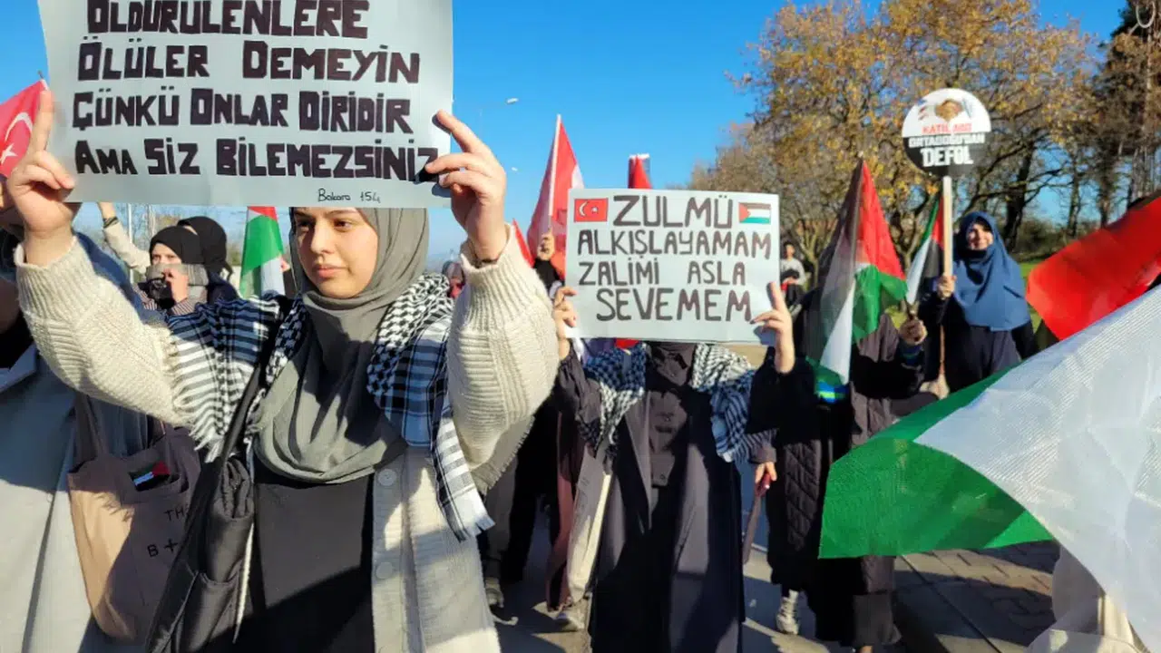 Yürüyüşün ardından Türkçe ve Arapça olarak hazırlanan bildiri okundu. Şehitlere rahmet dilenen açıklamada, Filistin'de zor durumda olanlara destek mesajı verildi.