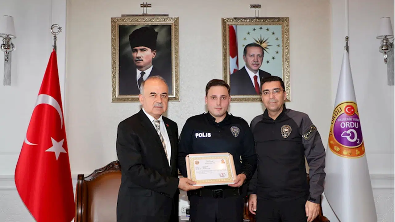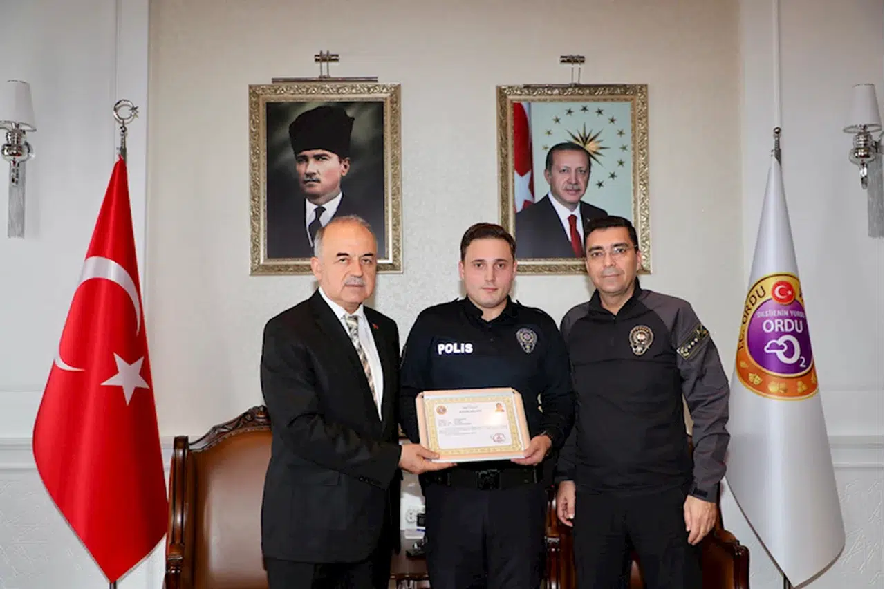 ORDU (AA) - Ordu Valisi Muammer Erol, hakkında yakalama kararı çıkartılan kişiyi 1 dakikada yakalayan polis memurlarına başarı belgesi verdi.