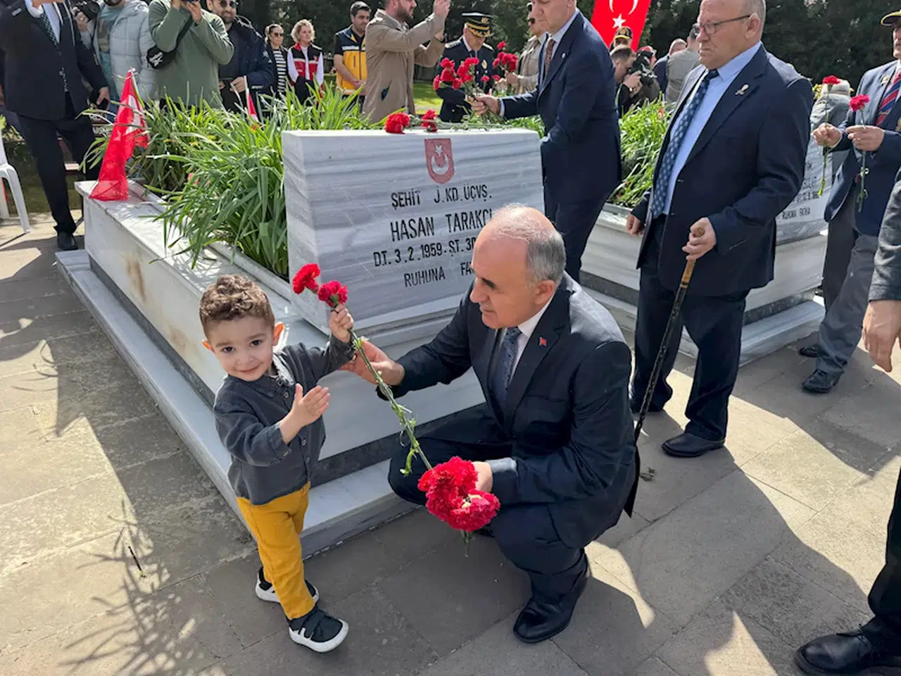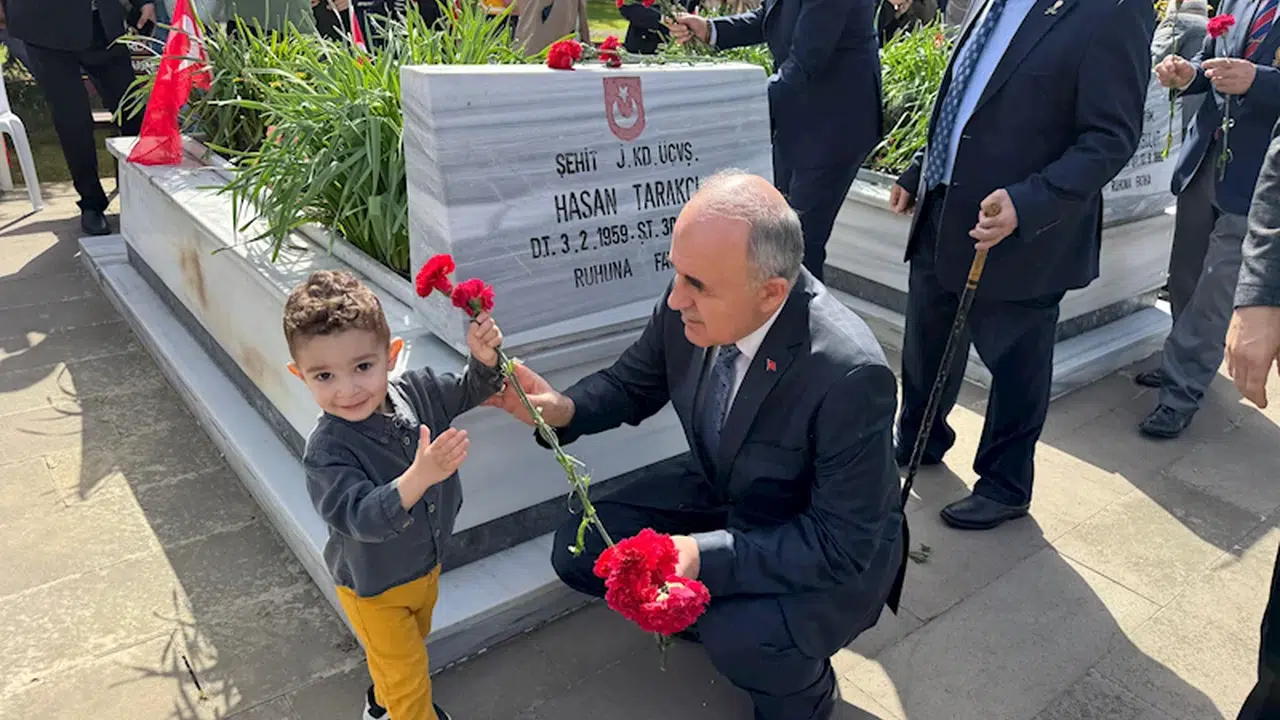 Ordu Şehitliği’nde düzenlenen program, şehitlerin ruhuna Kur’an-ı Kerim okunmasıyla başlandı. Kur’an-ı Kerim tilavetinin ardından İl Müftüsü İsmail Çiçek tarafından dua edildi. Program, Vali Muammer Erol, CHP Ordu Milletvekilleri Seyit Torun, Ordu Büyükşehir Belediyesi Başkan Vekili Celal Tezcan, Ordu Üniversitesi Rektörü Prof. Dr. Orhan Baş ve protokol üyelerinin şehitlerin kabirlerini ziyaret ederek dua etmesi ve karanfil bırakması ile devam etti. Bu sırada şehit Sefa Kabakkaya’nın yeğeni Arel Sefa Biçer, dayısının mezarına Vali Erol ile birlikte karanfil ve bayrak koymak istediğini belirtti. Biçer’in isteğini geri çevirmeyen Vali Erol, şehidin mezarı başında birlikte dua edip, karanfil ve bayrak yerleştirdi. (DHA)