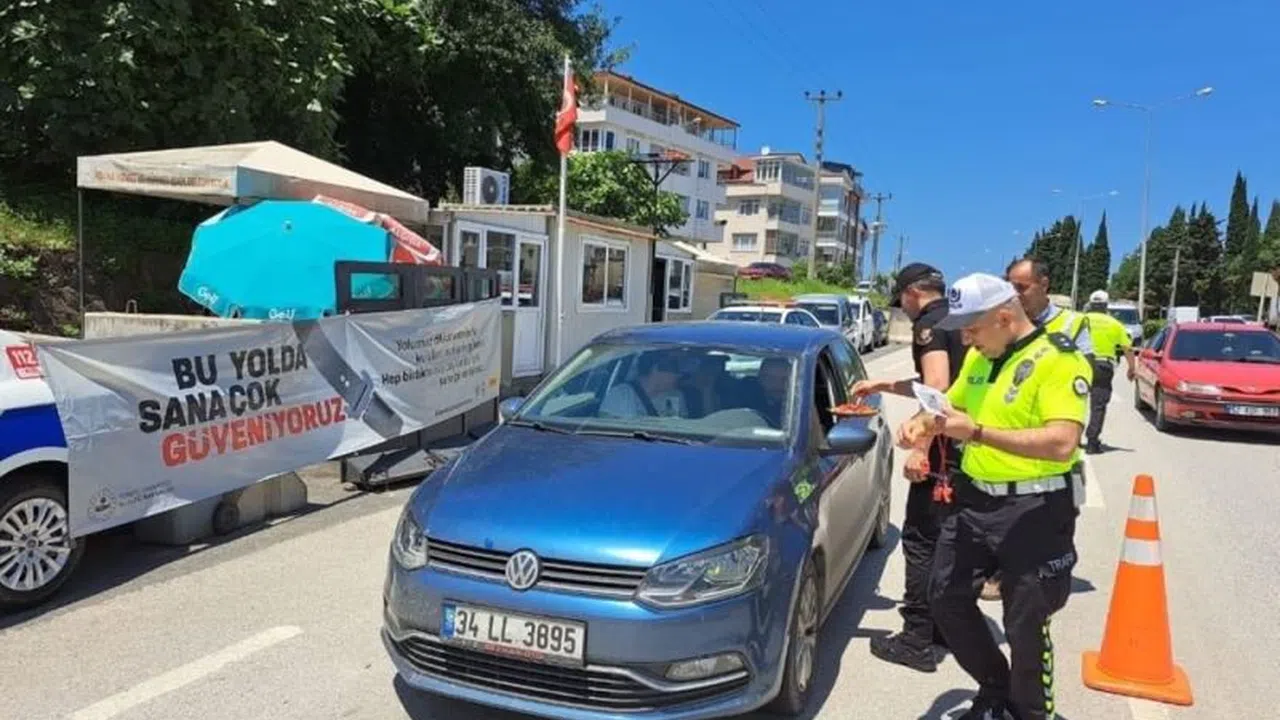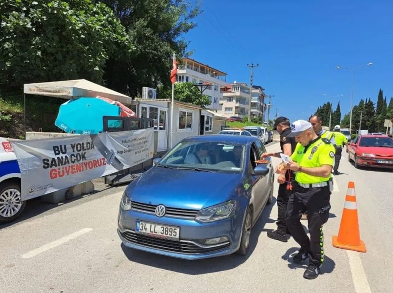 ORDU (AA) - Ordu'da Kurban Bayramı öncesi yapılan trafik denetimlerinde, vatandaşlara çikolata ikram edildi.