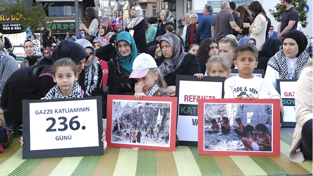 ORDU (AA) - Ordu'da İsrail'in Filistin'e yönelik saldırılarının son bulması talebiyle oturma eylemi yapıldı.