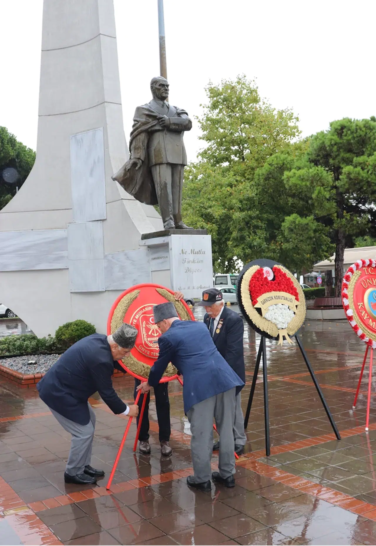 Ünye ilçesi Cumhuriyet Meydanı'ndaki törende, Atatürk Anıtı'na çelenk sunuldu. Ardından saygı duruşunda bulunulup İstiklal Marşı okundu.