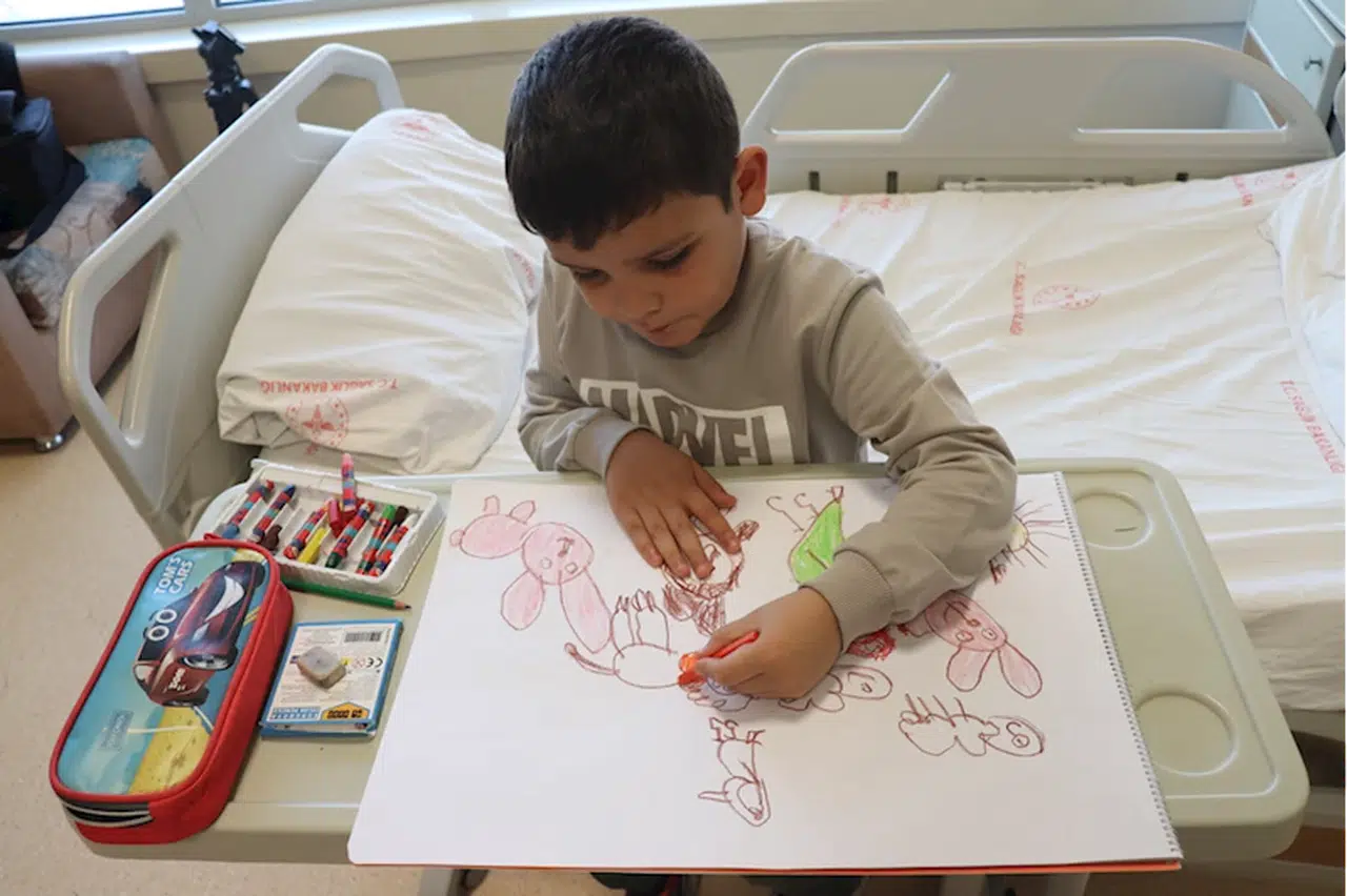 ORDU (AA) - Ordu'da kas hastası 7 yaşındaki Ömür Asaf Çöp, tedavi gördüğü hastanede yaptığı resimlerle moral buluyor.