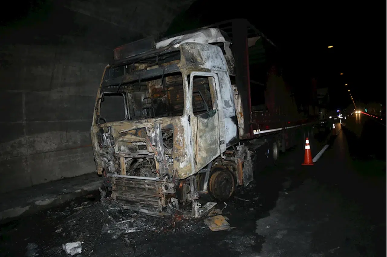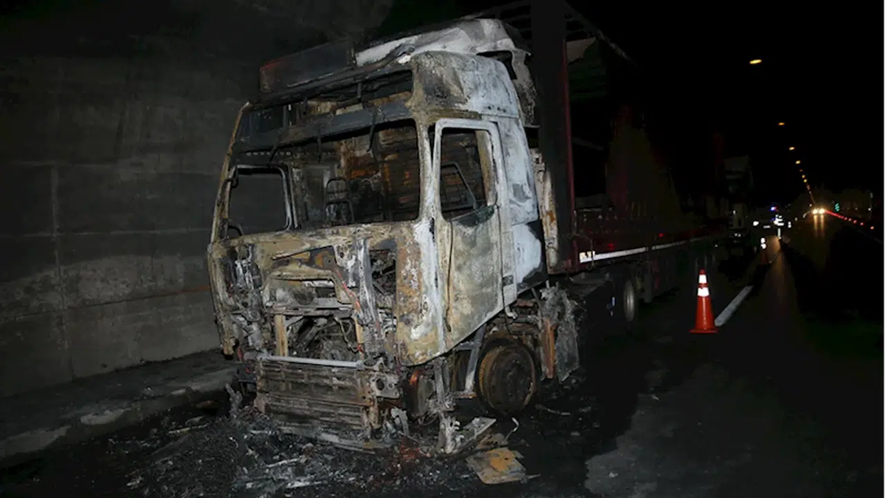 Bölgeye gelen ekiplerce söndürülen yangında tırın kupası kullanılamaz hale geldi, dorsesinde yüklü mercimeğin ise bir kısmı zarar gördü.