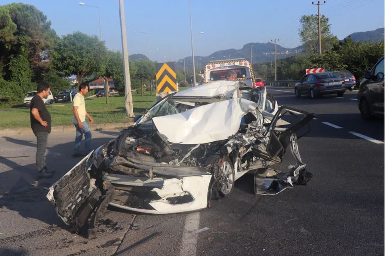 Savrulan otomobil, Liman Kavşağında bekleyen Mehmet Sobi yönetimindeki 52 LB 418 plakalı hafriyat kamyonuyla çarpıştı.
