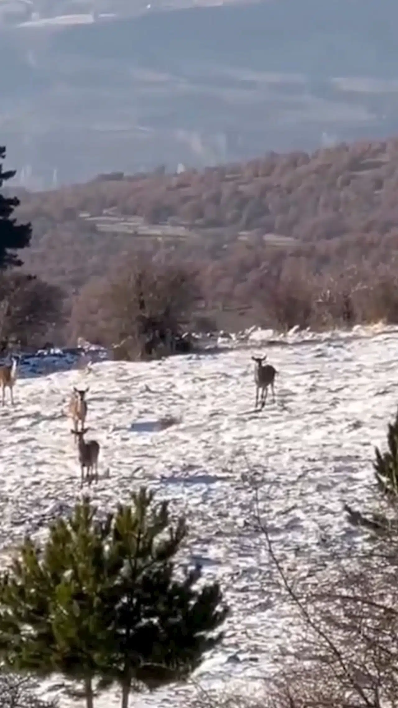 Mutlu YUCA/SEBEN (Bolu), (DHA)- BOLU'nun Seben ilçesinde karla kaplı ormanda yiyecek bulmakta zorlanan karaca sürüsü, yaylaya indi. O anlar, cep telefonu kamerasına yansıdı.