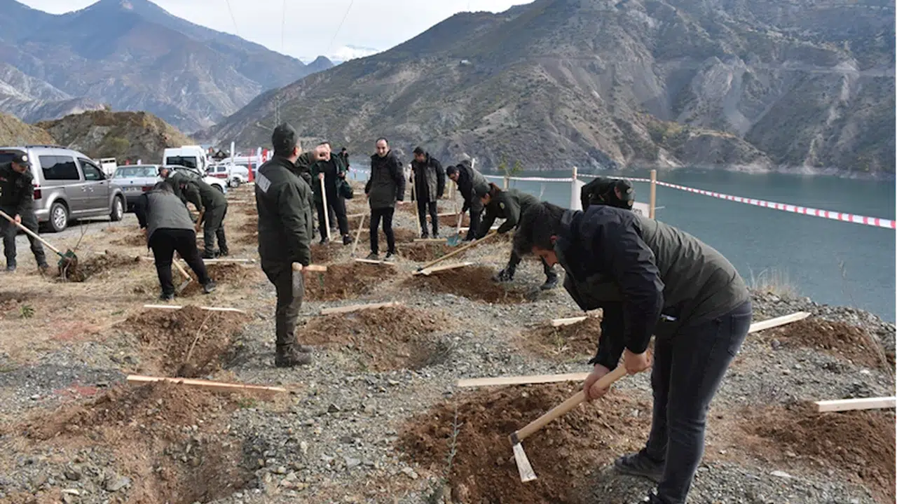 Artvin Orman Bölge Müdürlüğünce Deriner Baraj Gölü havzasındaki Hamamlı mevkisinde düzenlenen programda 1000 fidan toprakla buluşturuldu.