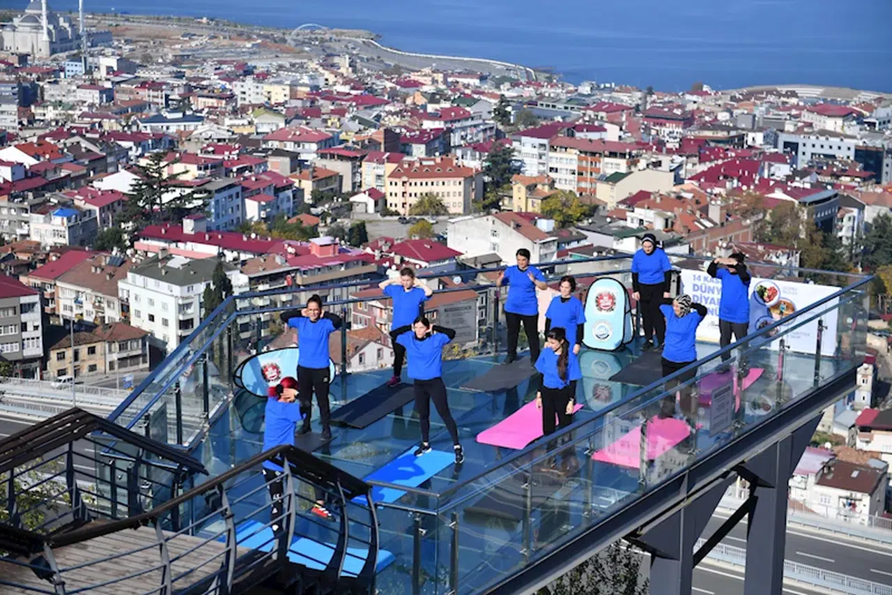 Boztepe Seyir Terasında yapılan ve diyabet hastalığının tedavisinde spor ve beslenmenin önemini vurgulamak amacıyla düzenlenen etkinlik kapsamında, Ortahisar Belediyesi Spor Müdürlüğü’nden Funda Yılmaz tarafından belediye personelinin bulunduğu ekibe çeşitli egzersizler yaptırıldı.