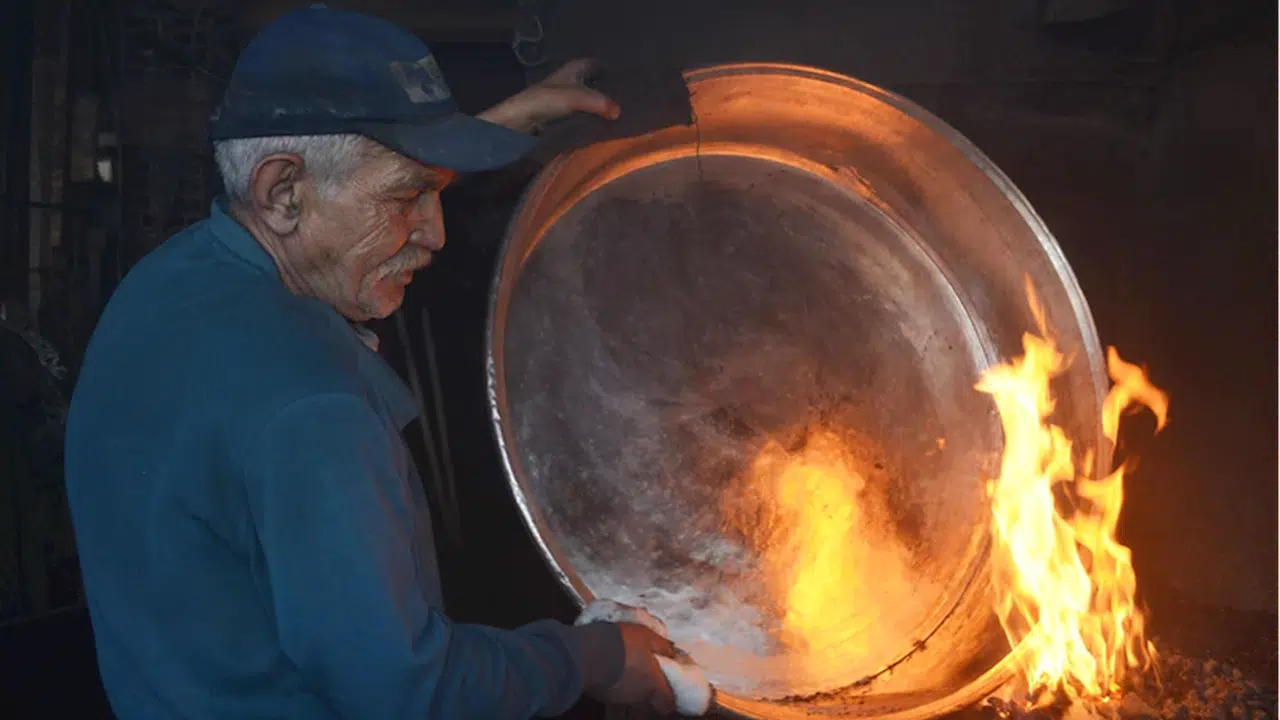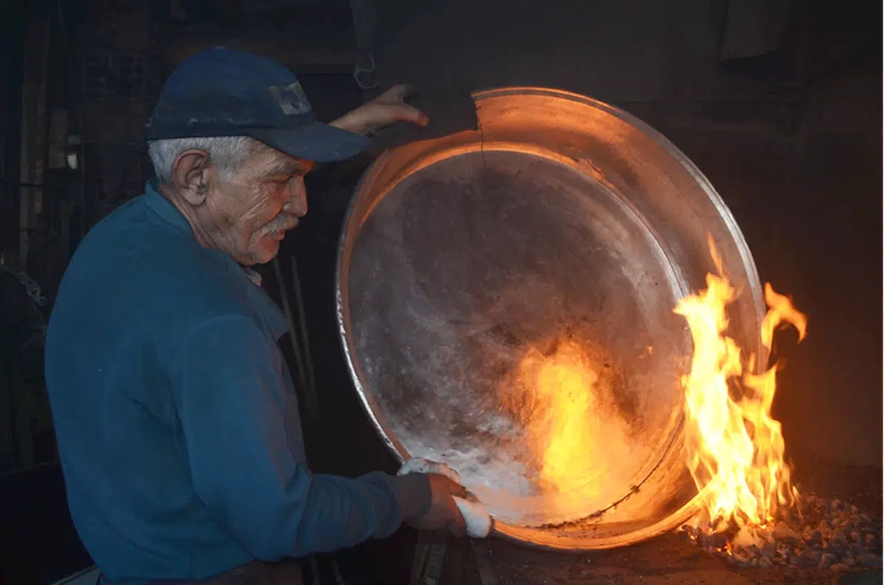 Sabahın ilk ışıklarıyla dükkanını açıp tezgahının başına geçen Düzdemir, ateşin önünde müşterilerin getirdiği mutfak eşyalarını geleneksel yöntemlerle kalaylayarak yeni görünüme kavuşturuyor.