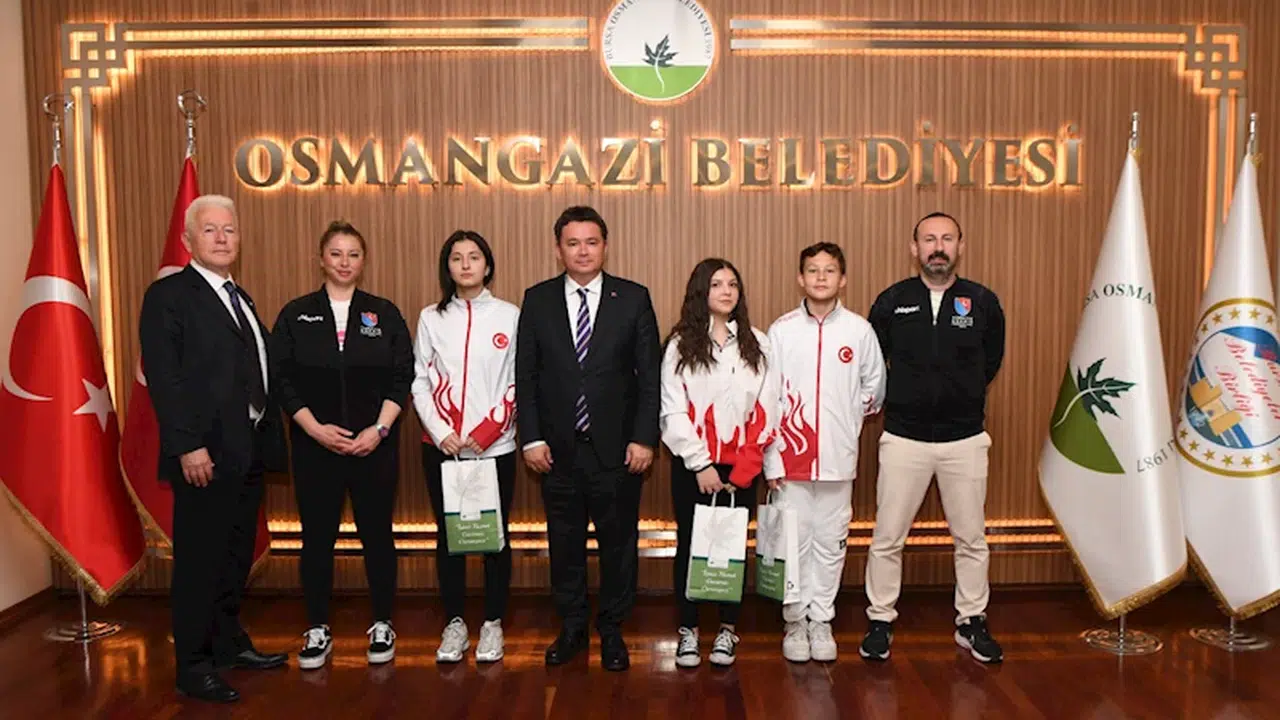 Gökhan ÖZHAN/BURSA,(DHA)- BURSA'da ABFA Spor Kulübü eskrim Sporcuları Osmangazi Belediye Başkanı Erkan Aydın’ı ziyaret etti.