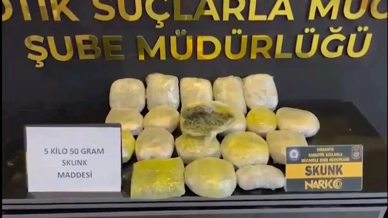 İbrahim EMÜL/OSMANİYE, (DHA) - OSMANİYE’de polisin şüphe üzerine durdurarak arama yaptığı otomobilde 5 kilo 50 gram Skunk ele geçirildi. Olayla ilgili gözaltına alınan 3 kişi tutuklandı.