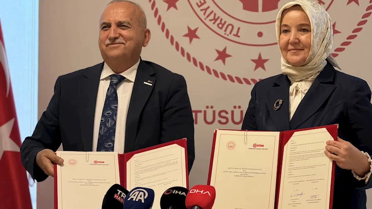 Taha AYHAN- Celal ATALAY/ANKARA, (DHA)- AİLE ve Sosyal Hizmetler Bakanlığı ile Ortadoğu Sanayi ve Ticaret Merkezi (OSTİM) Organize Sanayi Bölgesi (OSB) Müdürlüğü arasında kadınlara ve kız öğrencilere yönelik İstihdam Garantili Mesleki Teorik ve Pratik Eğitim Programı oluşturulmasına ilişkin iş birliği protokolü imzalandı.
