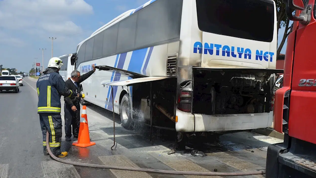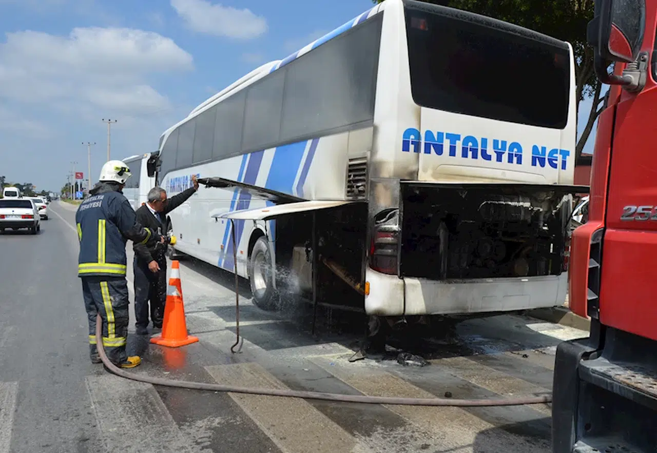 Namık Kemal KILINÇ/SERİK (Antalya), (DHA)- ANTALYA'nın Serik ilçesinde seyir halindeki şehirler arası yolcu otobüsünde çıkan yangın, yedek şoförün dikkati sayesinde fark edilip söndürüldü.