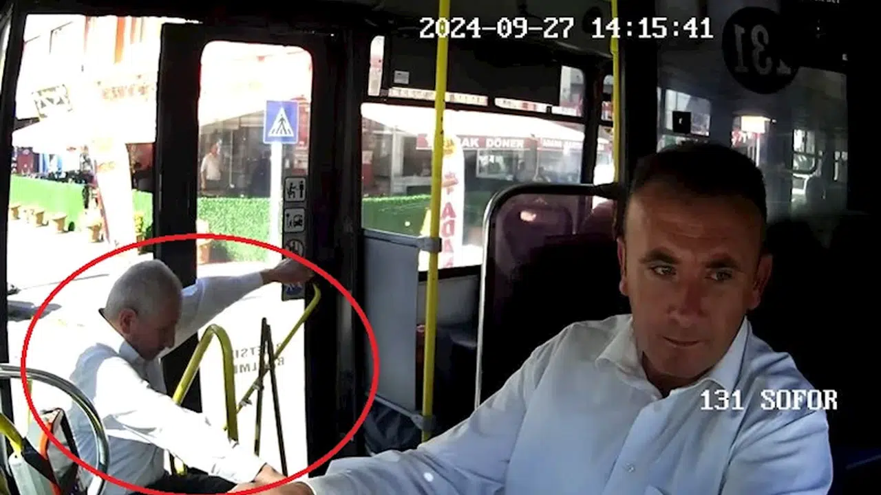 Şükrü Özcan'ın otobüsün açık olan ön kapısından düştüğü anlar ise özel halk otobüsünün araç içi kamerasına yansıdı. Görüntülerde, Özcan’ın otobüse elinde bir çanta ile bindiği, bir süre ayakta gittiği ve yerine oturmak istediği sırada otobüsün ani freniyle dengesini kaybedip, ön kapıdan düştüğü görüldü. Öte yandan, görüntülerde çevredekilerin panikle Özcan’a doğru koştukları, otobüs şoförünün de sağlık görevlilerini arayıp yolcunun aşağı düştüğünü anlattığı ve acil ambulans talep ettiği de yer aldı. (DHA)
