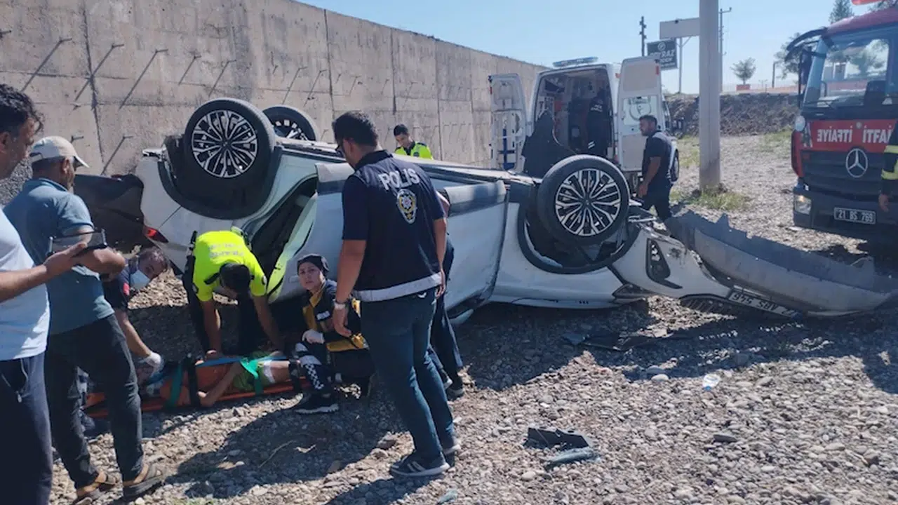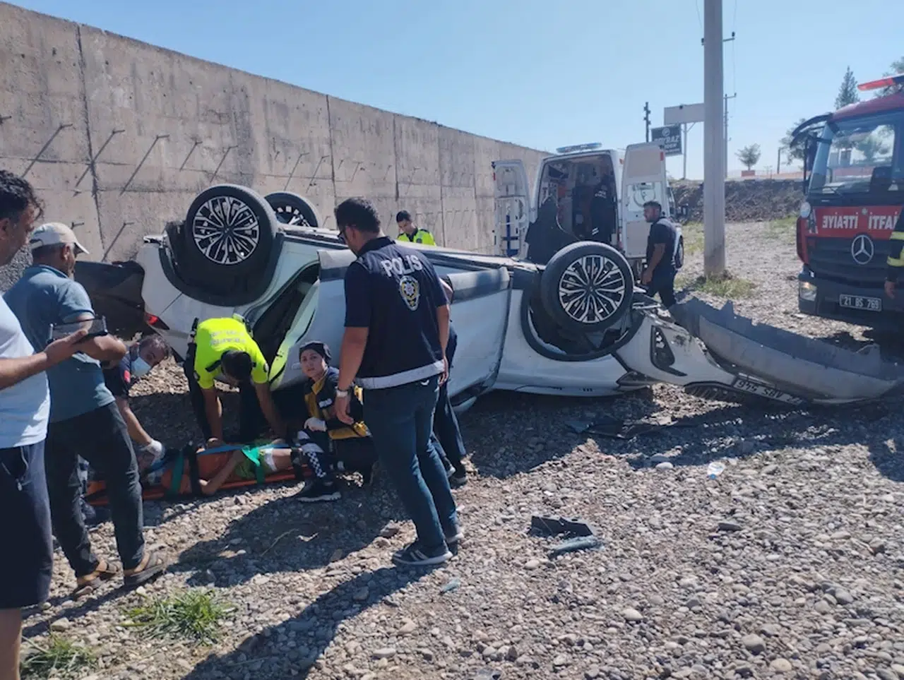 Seyfettin EKEN/DİYARBAKIR, (DHA)- DİYARBAKIR’da sürücüsünün kontrolünden çıkan otomobilin yaklaşık 3 metre yükseklikten yol kenarına düşerek ters döndüğü kazada, aynı aileden 1’i ağır 5 kişi yaralandı.