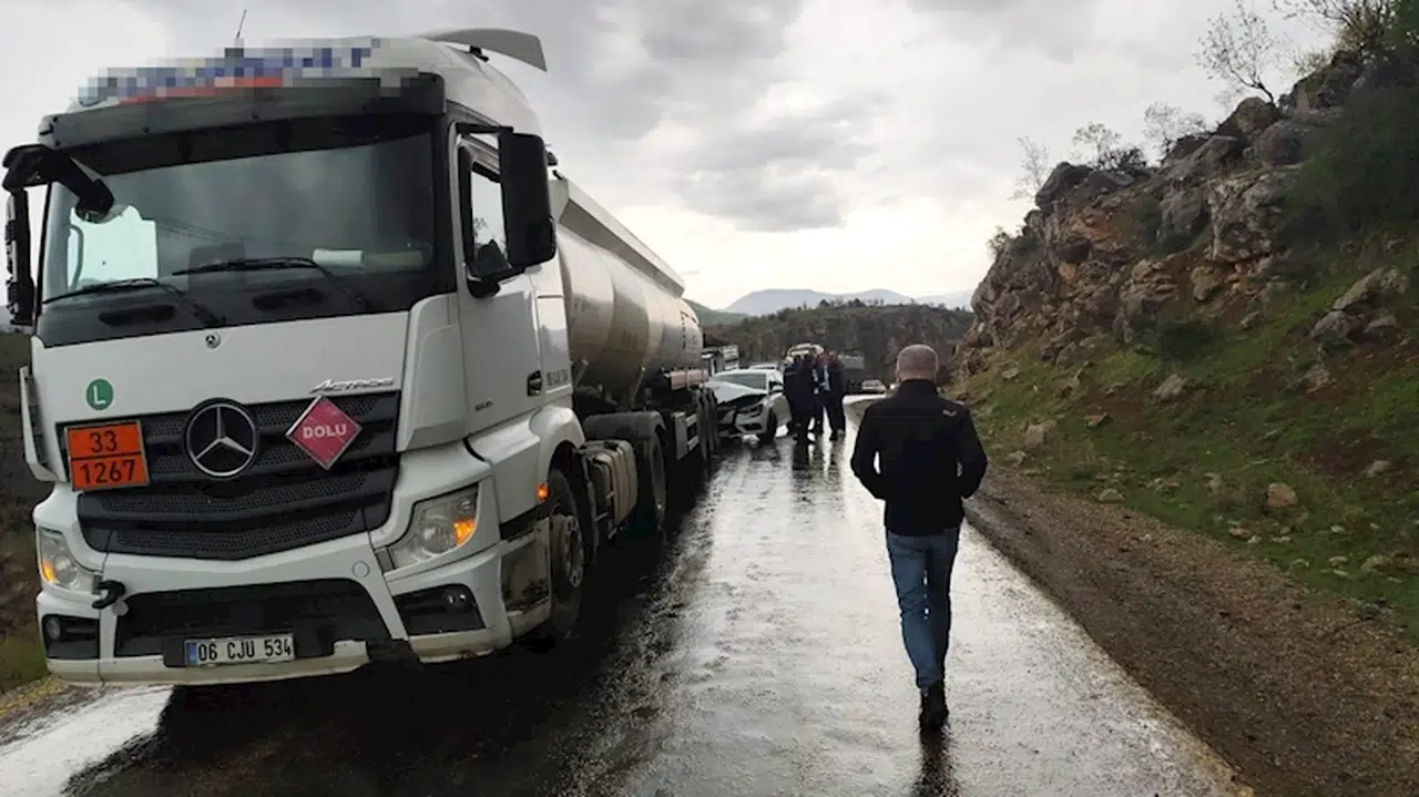 Otomobil, akaryakıt tankerine çarptı; 2'si çocuk 4 yaralı