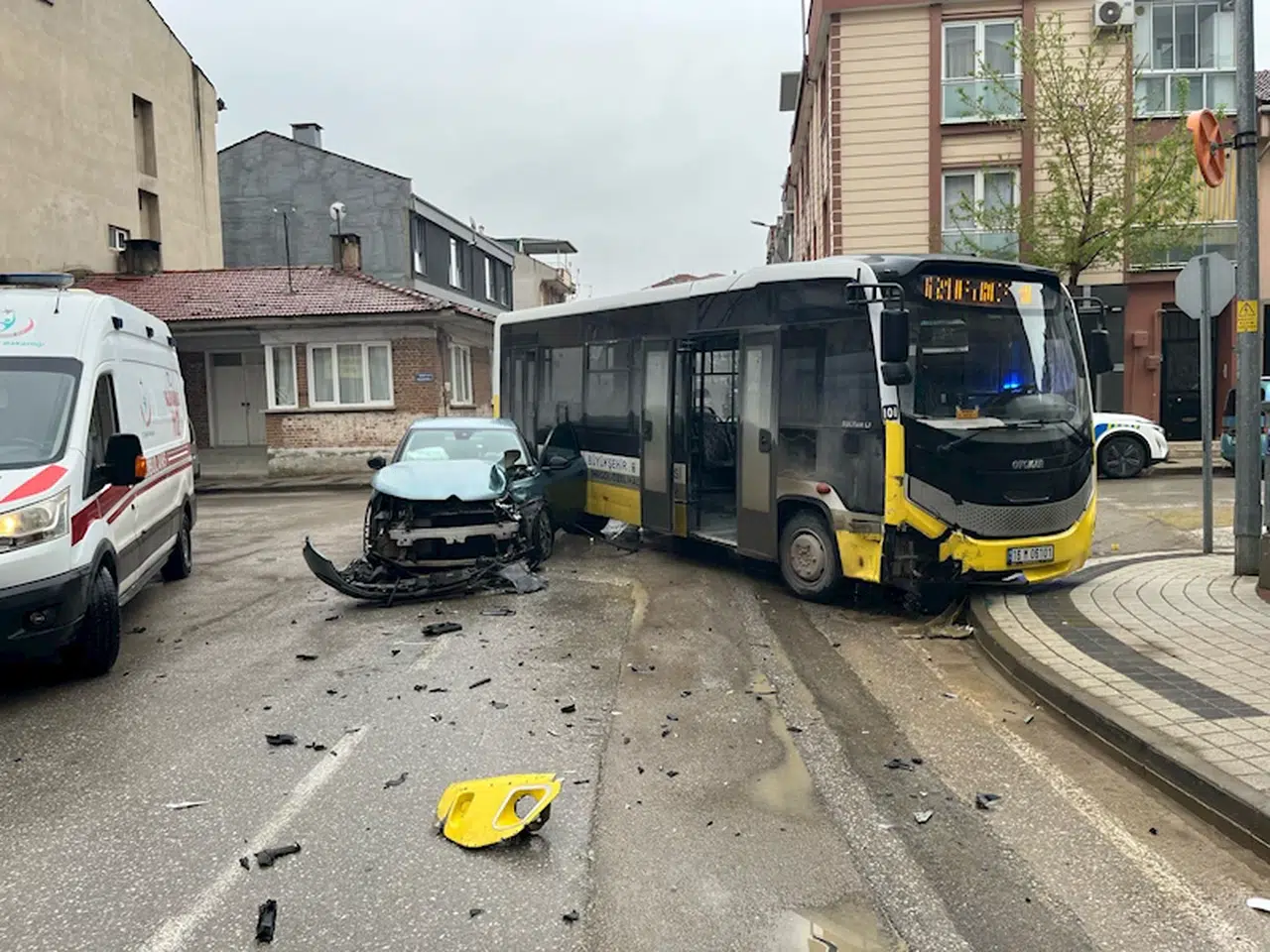 Otomobil, halk otobüsüne çarptı: 3 yaralı