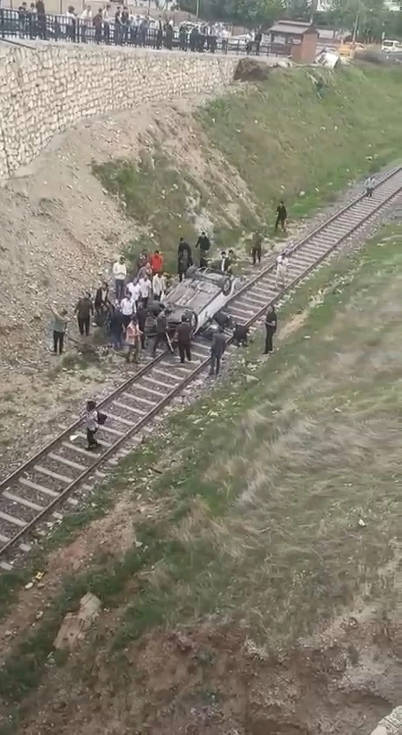 Bayram AYHAN/BATMAN, (DHA)- BATMAN’da yaklaşık 7 metre yükseklikteki köprünün demir korkuluklarını kırarak demir yoluna düşen otomobildeki 3 kişi yaralandı.