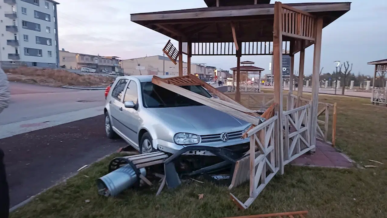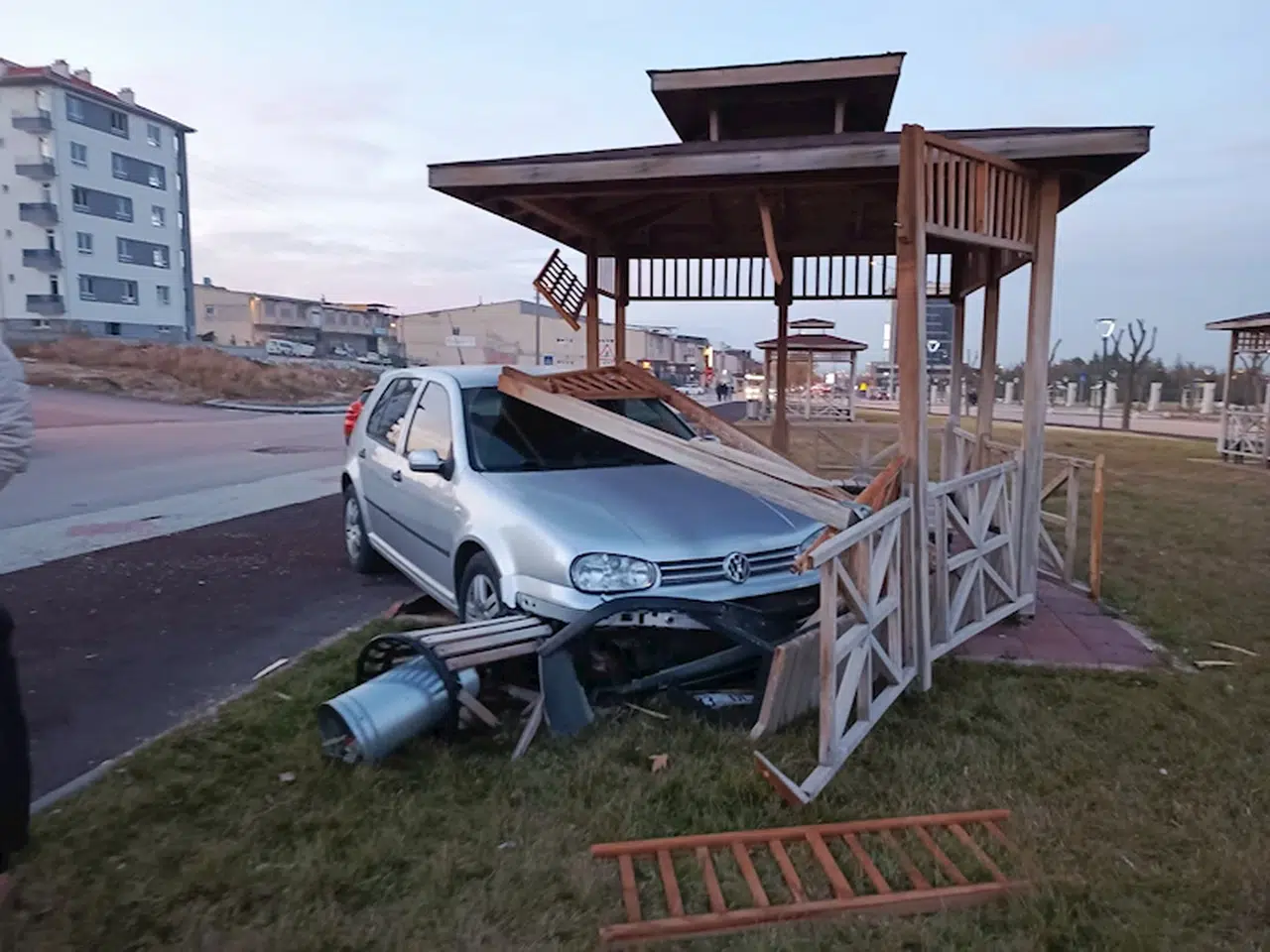 Muammer ŞEN/KARAMAN,(DHA)- KARAMAN'da sürücü Hatice Ö.'nin kontrolünden çıkan otomobil, parktaki kameriyeye daldı. O sırada kameriyede oturanların olmaması felaketi önledi.