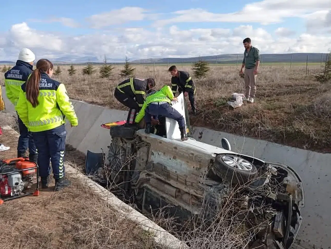 Erkan ALTUNTAŞ /AKSARAY,(DHA)- AKSARAY’da sürücüsünün kontrolünden çıkan otomobilin, boş sulama kanalına devrilmesi sonucu meydana gelen kazada aynı aileden 4 kişi yaralandı.