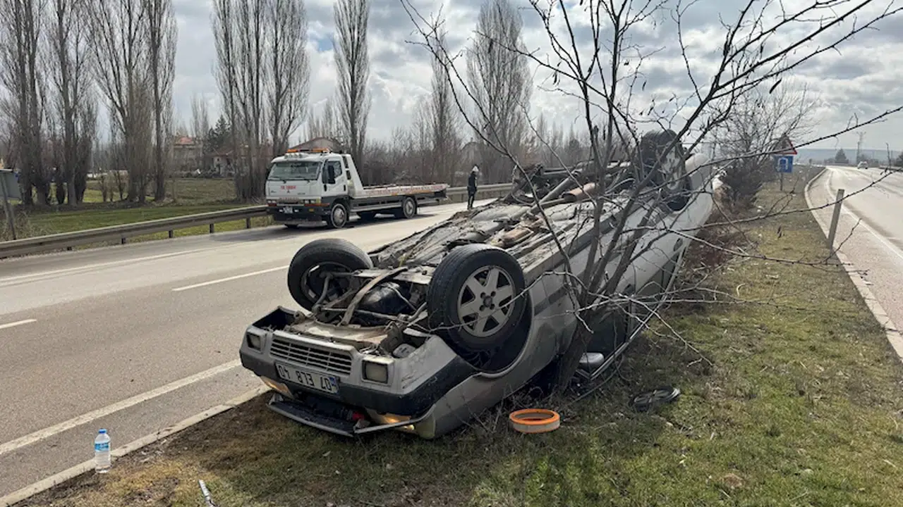 Ahmet DAĞLI/SANDIKLI, (DHA)- AFYONKARAHİSAR'ın Sandıklı ilçesinde refüje çarparak takla attıktan sonra ters dönen otomobilin sürücüsü yaralandı.