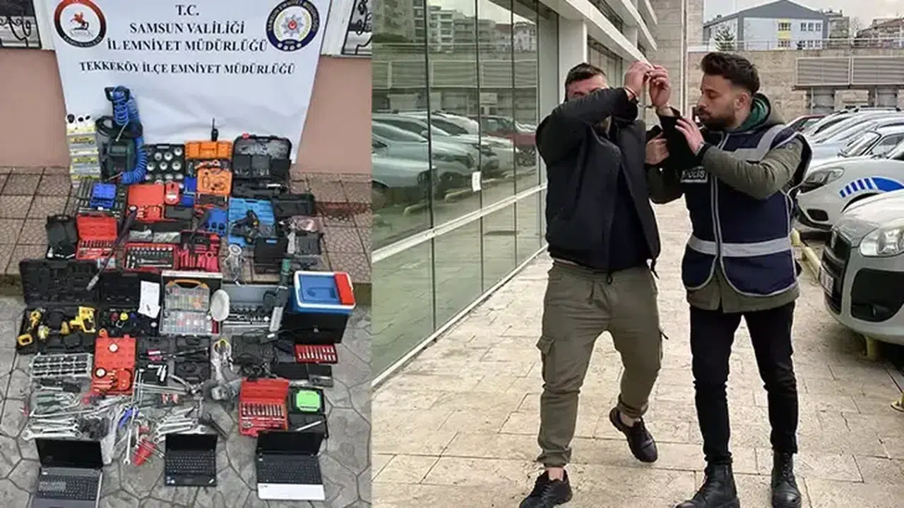 İl Emniyet Müdürlüğü Tekkeköy İlçe Emniyet Müdürlüğü ekipleri, 7 Ocak tarihinde ilçede bulunan bir otomobil tamirhanesinden gece yarısı yaklaşık 400 bin lira değerinde eşyayı çalıp araçlarına yükleyen Y.Ü. ve kardeşi İ.Ü.’nün yakalanması için çalışma başlattı. Şüphelilerin Canik ilçesindeki evlerine dün yapılan operasyonda, 3 dizüstü bilgisayar, radyatör test cihazı, ölçüm aleti, 3 akü, tork takımı, hava ölçer, arıza tespit cihazı, kaynak makinesi, akü ölçüm cihazı, hava tabancası, araç yıkama makinesi, cila makinesi, elektrikli testere, matkap ve lokma takımı ele geçirildi. Olayla ilgili ağabey ve kardeşi gözaltına alındı.