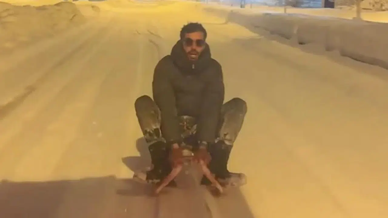 Otomobilin arkasına bağlanan kızakla kaydı