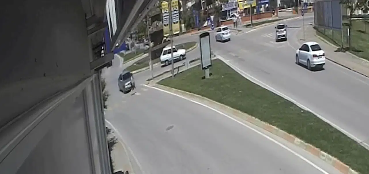 Kaza bir iş yerinin güvenlik kamerasına yansırken, otomobil sürücüsü A.Ç. gözaltına alındı. (DHA)