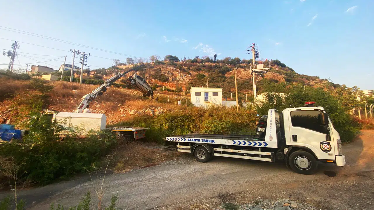 ANTALYA'nın Alanya ilçesinde 7 metreden şarampole yuvarlanan otomobilin sürücüsü A.Y. yaralandı.